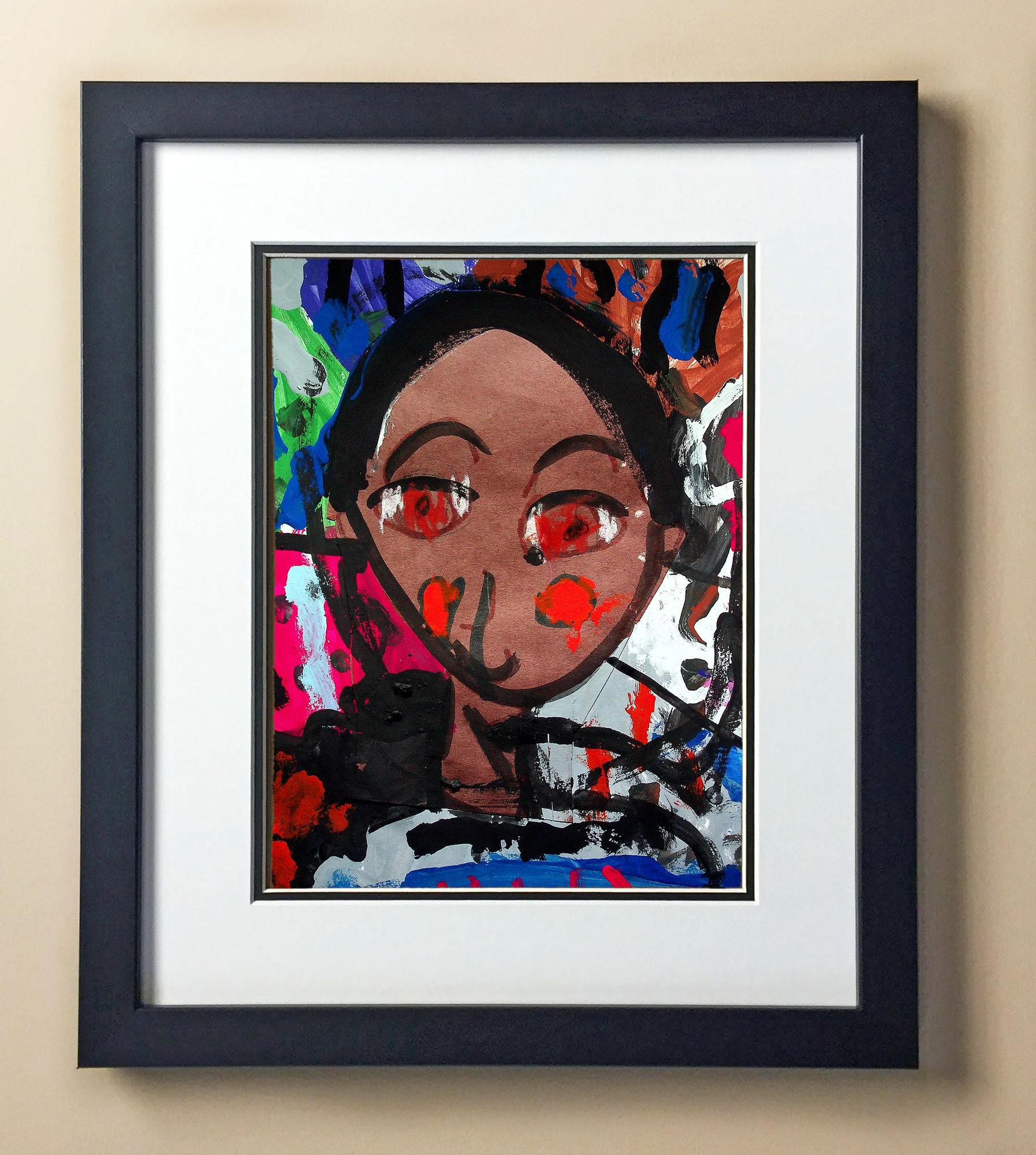 Included with the purchase is the Students Artwork, Frame, double matboard, shatter proof plexiglass, and a ready to hang backerboard with turnbuttons
