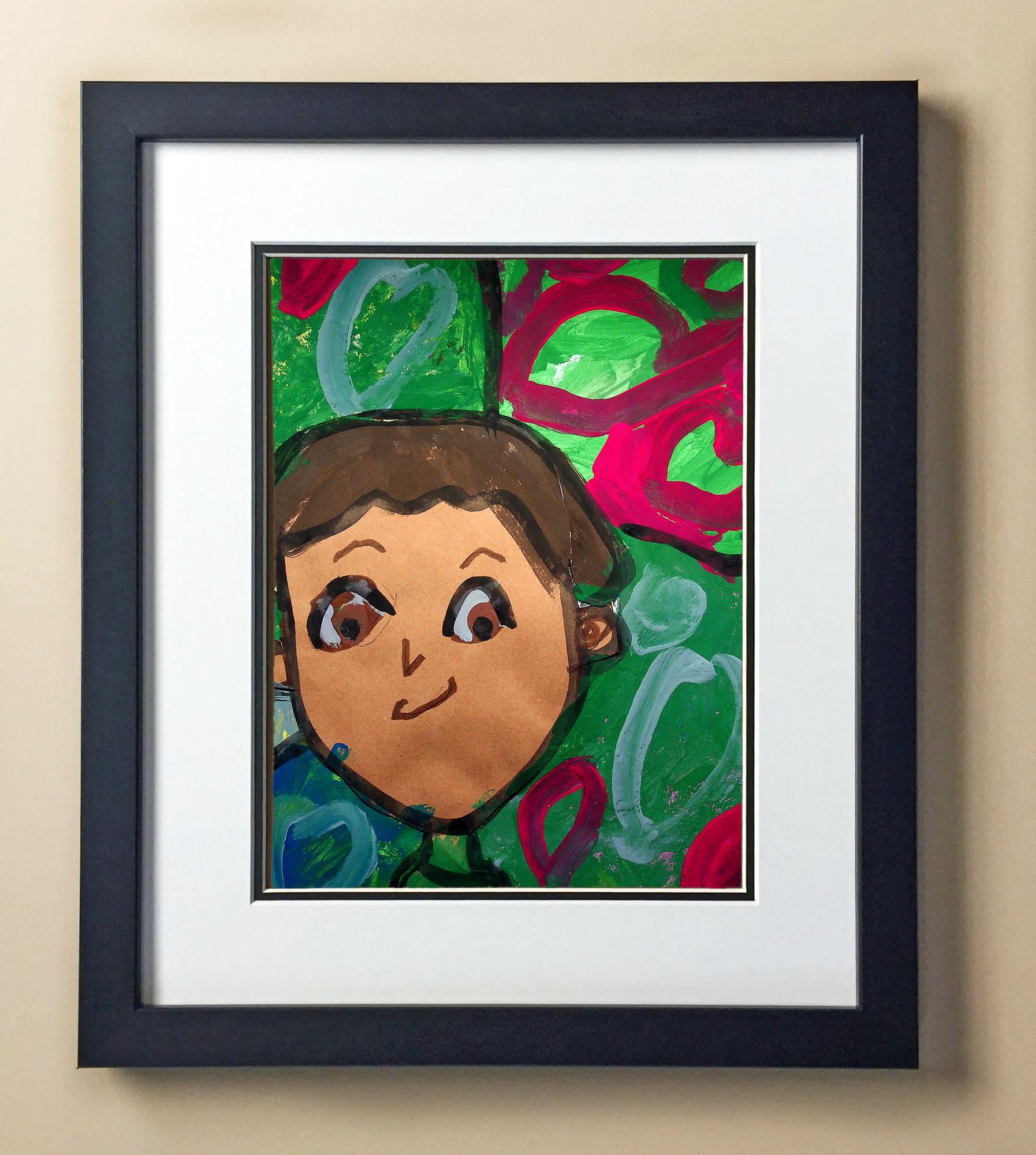 Included with the purchase is the Students Artwork, Frame, double matboard, shatter proof plexiglass, and a ready to hang backerboard with turnbuttons