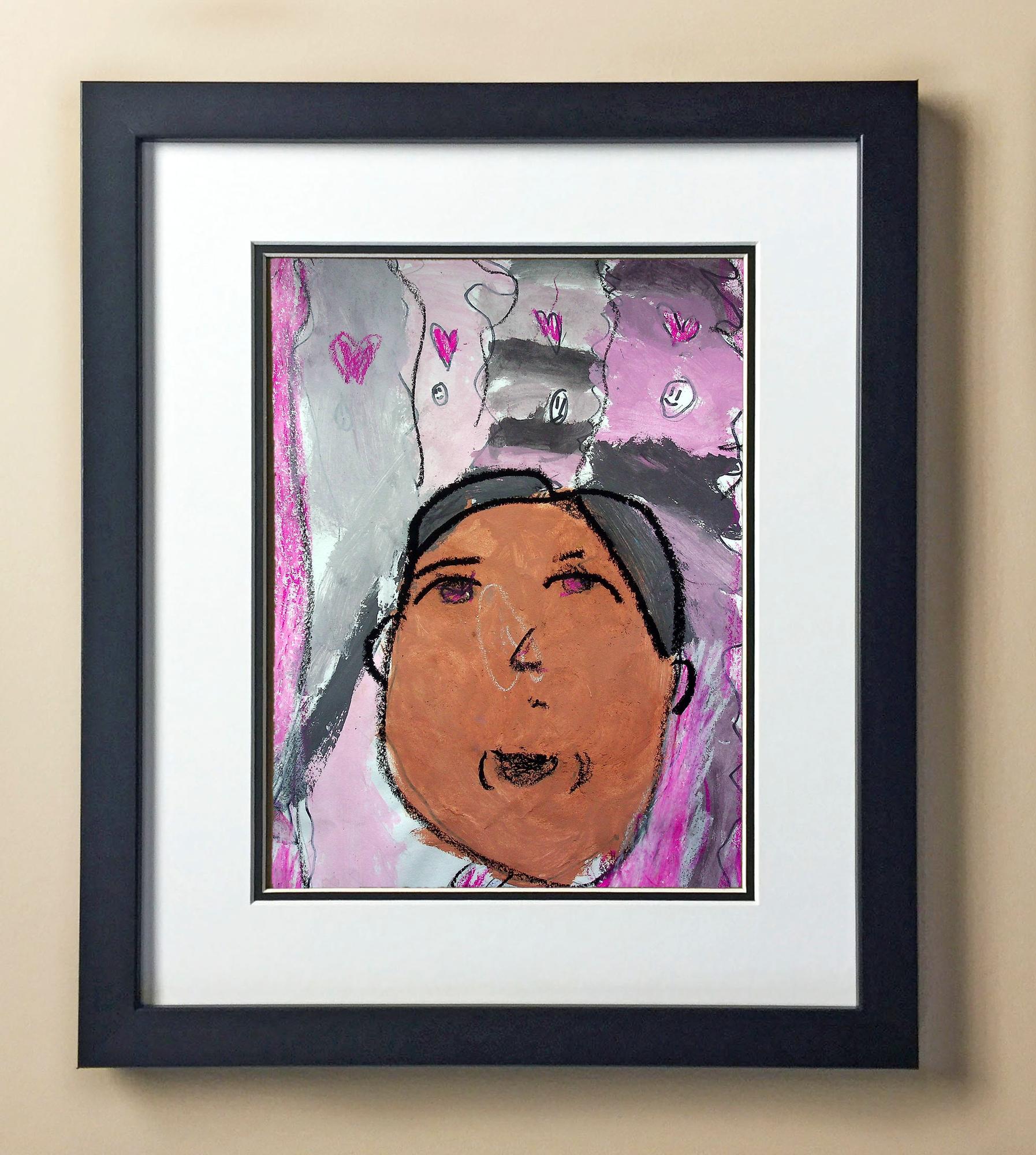 Included with the purchase is the Students Artwork, Frame, double matboard, shatter proof plexiglass, and a ready to hang backerboard with turnbuttons