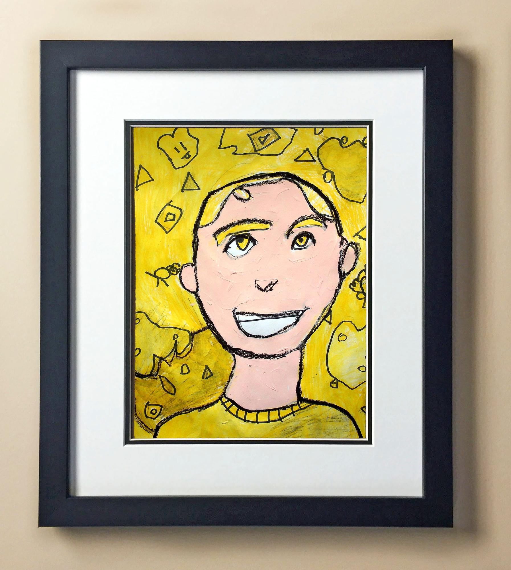Included with the purchase is the Students Artwork, Frame, double matboard, shatter proof plexiglass, and a ready to hang backerboard with turnbuttons