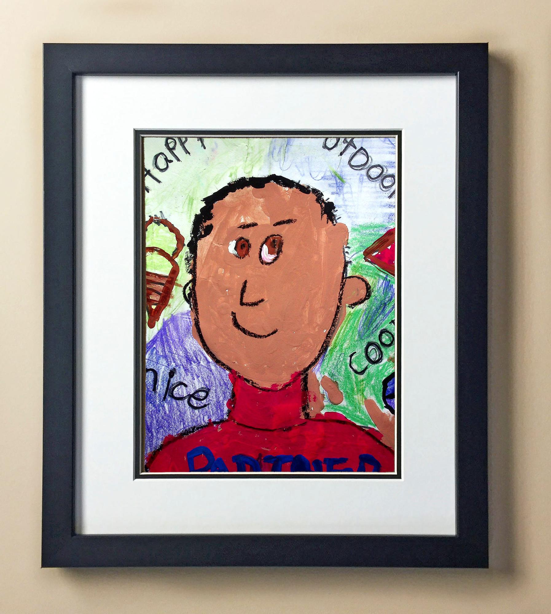Included with the purchase is the Students Artwork, Frame, double matboard, shatter proof plexiglass, and a ready to hang backerboard with turnbuttons
