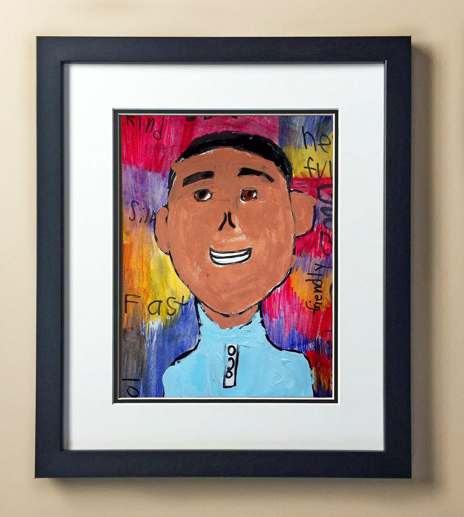Included with the purchase is the Students Artwork, Frame, double matboard, shatter proof plexiglass, and a ready to hang backerboard with turnbuttons