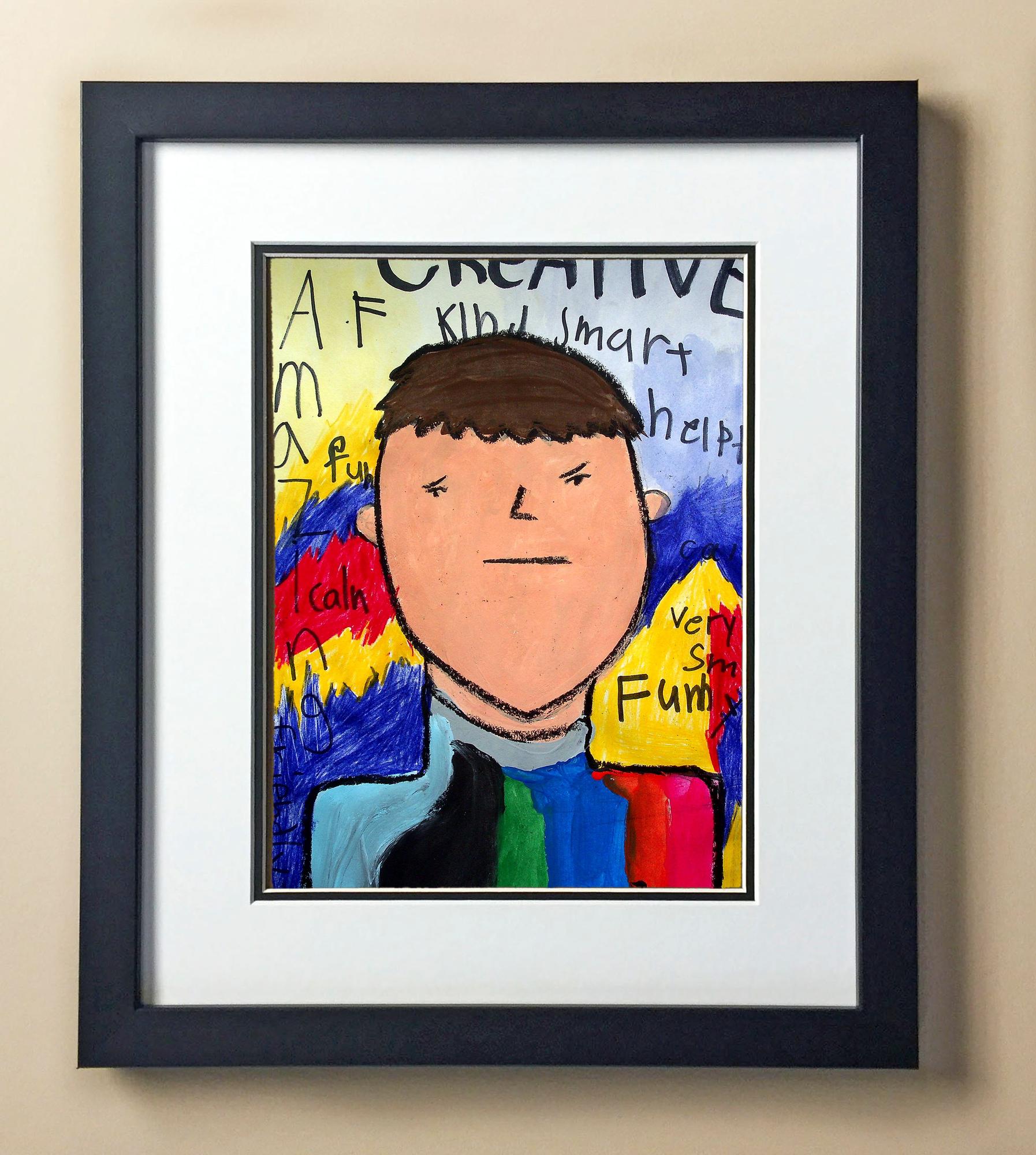 Included with the purchase is the Students Artwork, Frame, double matboard, shatter proof plexiglass, and a ready to hang backerboard with turnbuttons