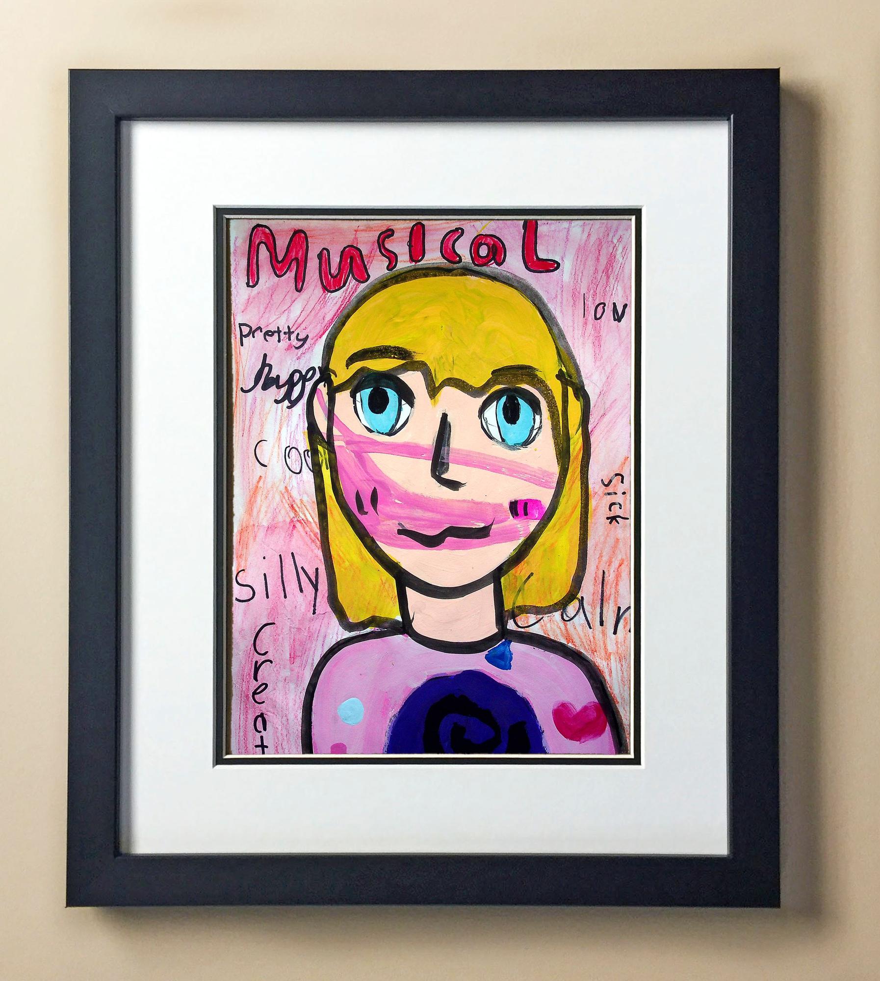 Included with the purchase is the Students Artwork, Frame, double matboard, shatter proof plexiglass, and a ready to hang backerboard with turnbuttons