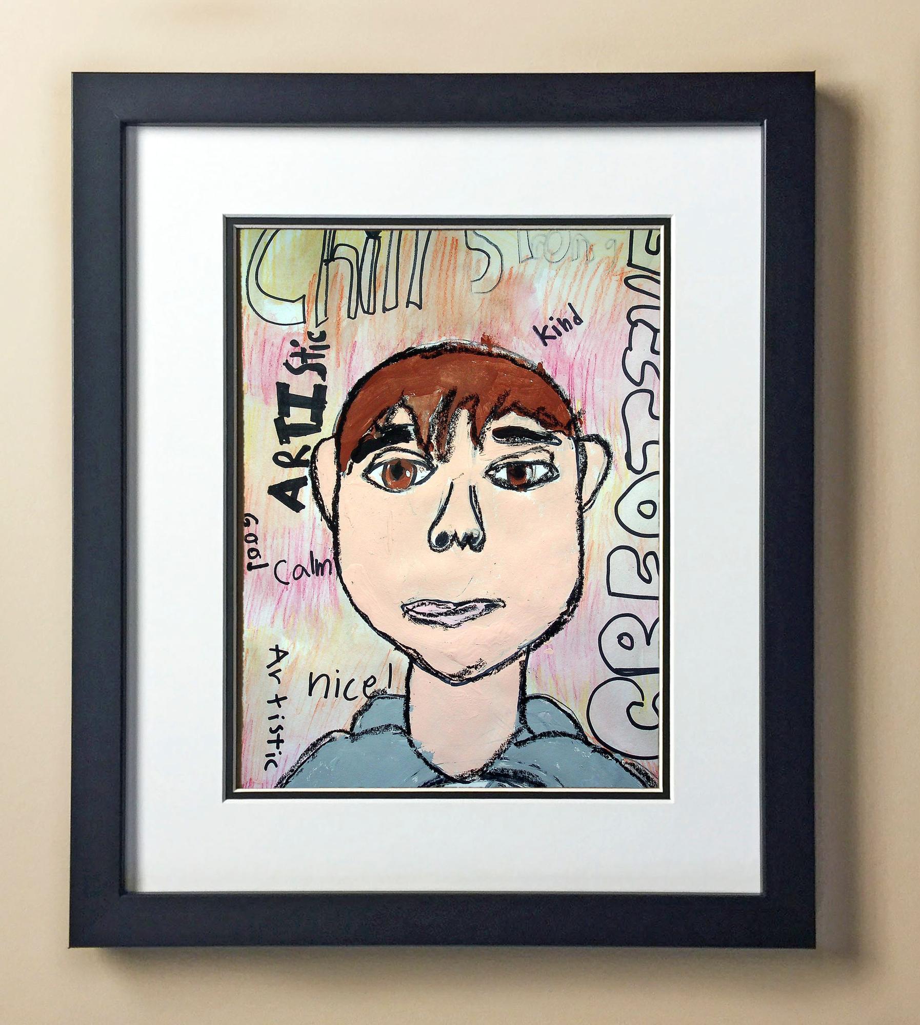Included with the purchase is the Students Artwork, Frame, double matboard, shatter proof plexiglass, and a ready to hang backerboard with turnbuttons
