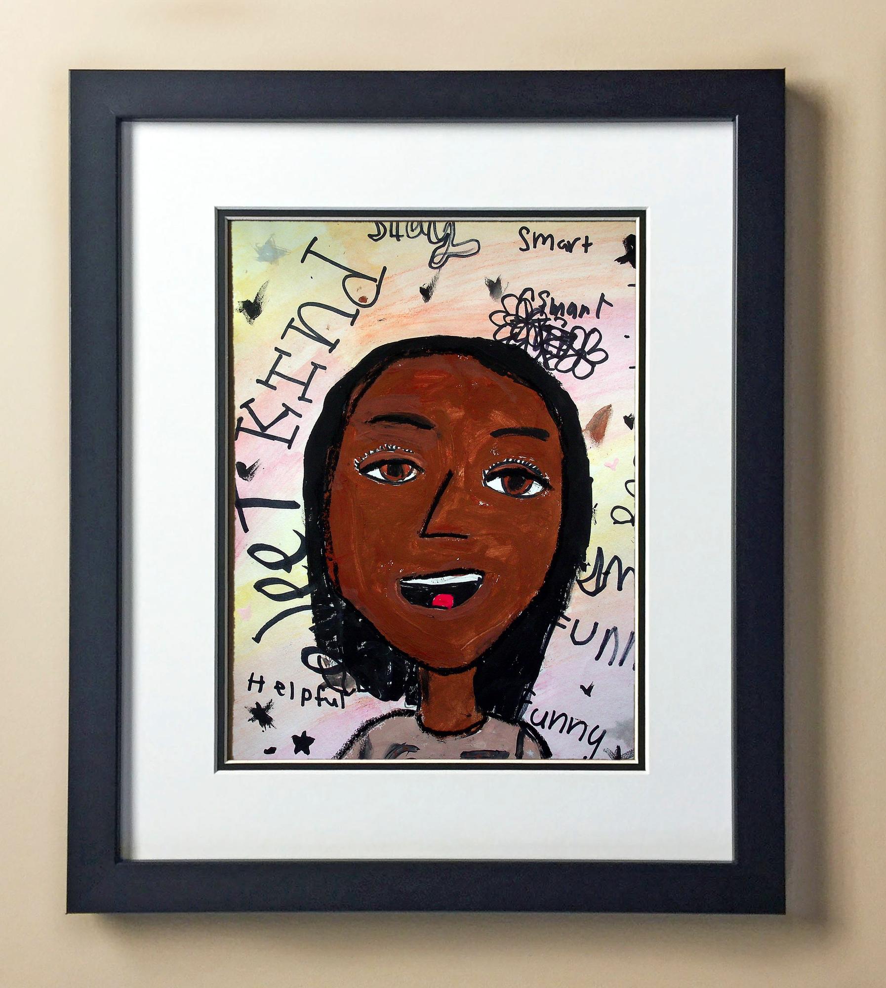 Included with the purchase is the Students Artwork, Frame, double matboard, shatter proof plexiglass, and a ready to hang backerboard with turnbuttons