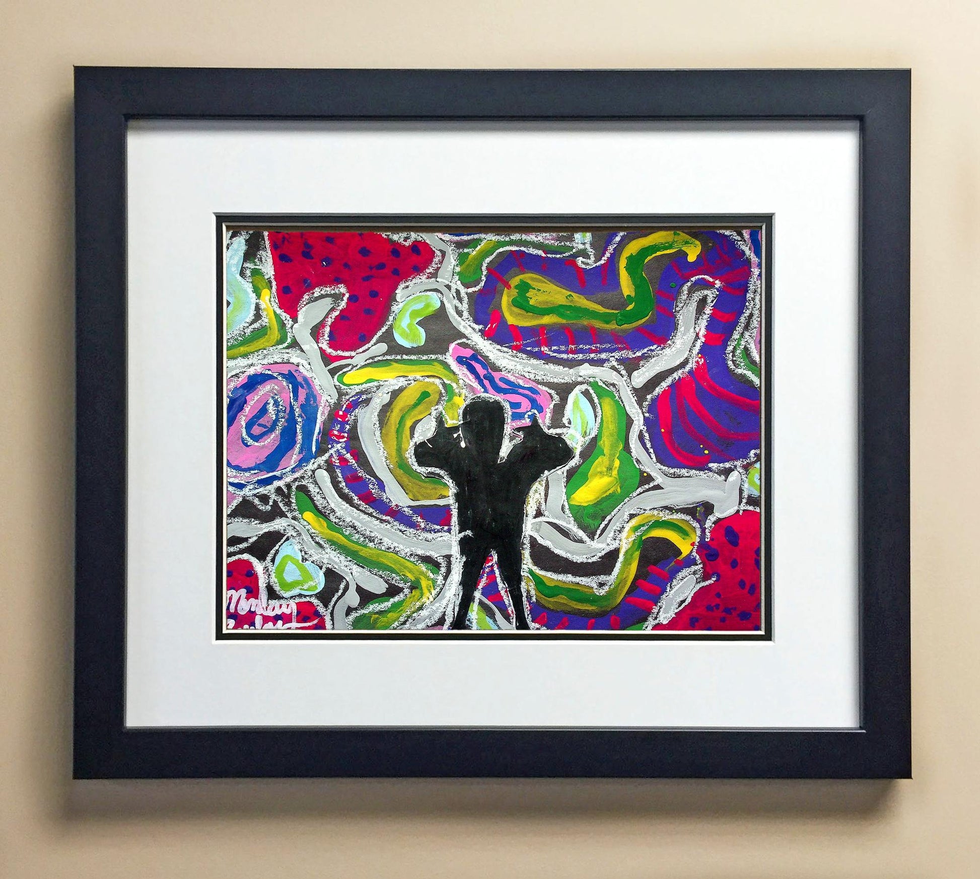 Included with the purchase is the Students Artwork, Frame, double matboard, shatter proof plexiglass, and a ready to hang backerboard with turnbuttons