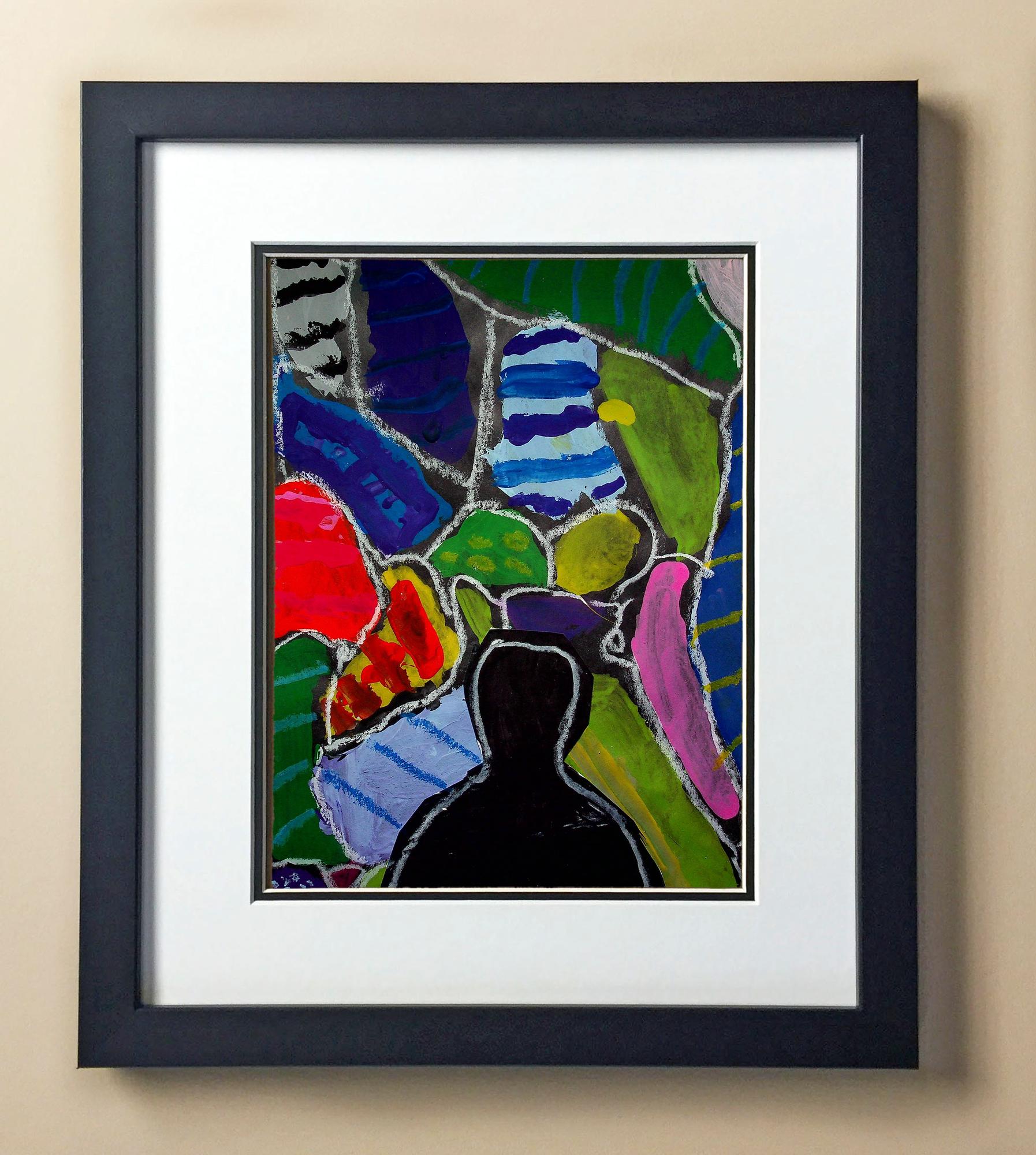 Included with the purchase is the Students Artwork, Frame, double matboard, shatter proof plexiglass, and a ready to hang backerboard with turnbuttons