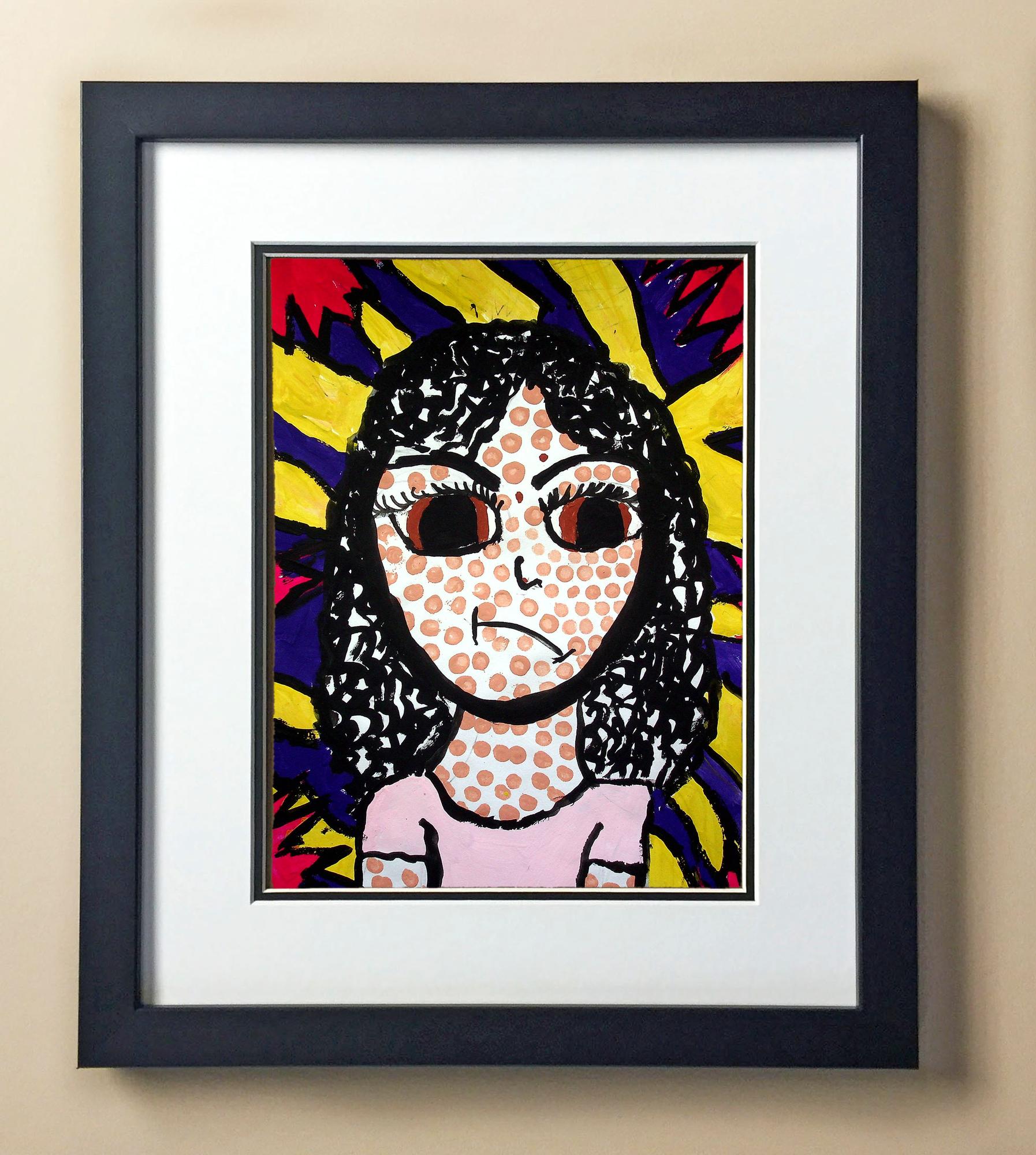 Included with the purchase is the Students Artwork, Frame, double matboard, shatter proof plexiglass, and a ready to hang backerboard with turnbuttons