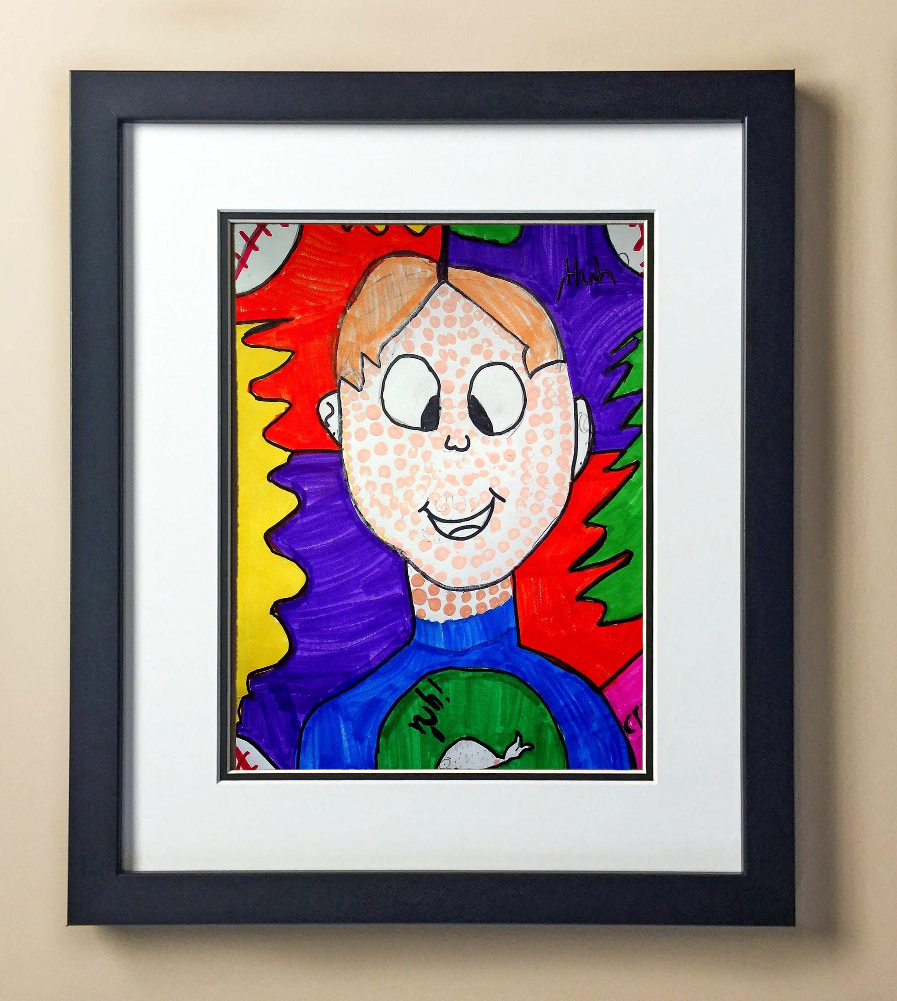 Included with the purchase is the Students Artwork, Frame, double matboard, shatter proof plexiglass, and a ready to hang backerboard with turnbuttons