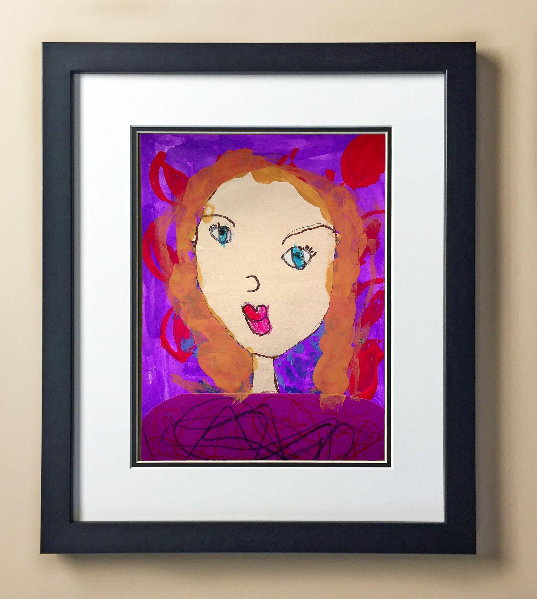Included with the purchase is the Students Artwork, Frame, double matboard, shatter proof plexiglass, and a ready to hang backerboard with turnbuttons