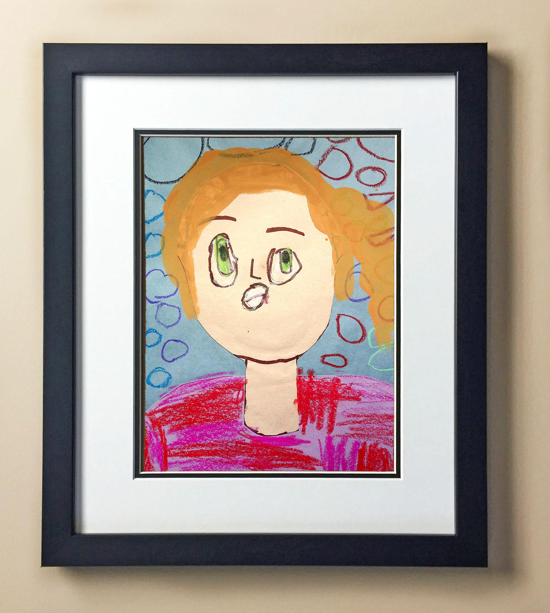 Included with the purchase is the Students Artwork, Frame, double matboard, shatter proof plexiglass, and a ready to hang backerboard with turnbuttons