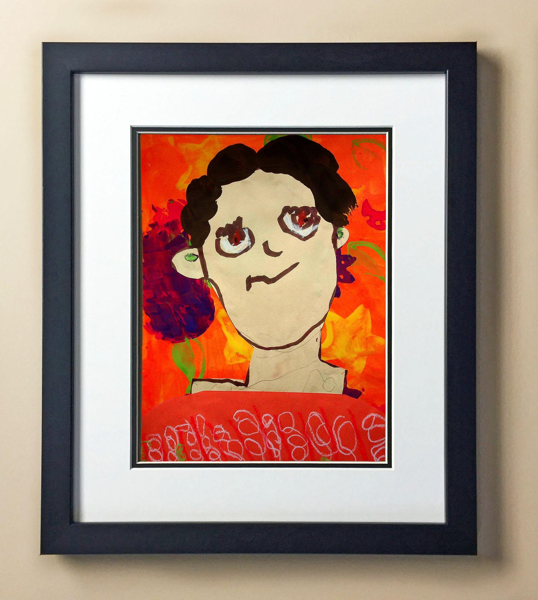Included with the purchase is the Students Artwork, Frame, double matboard, shatter proof plexiglass, and a ready to hang backerboard with turnbuttons