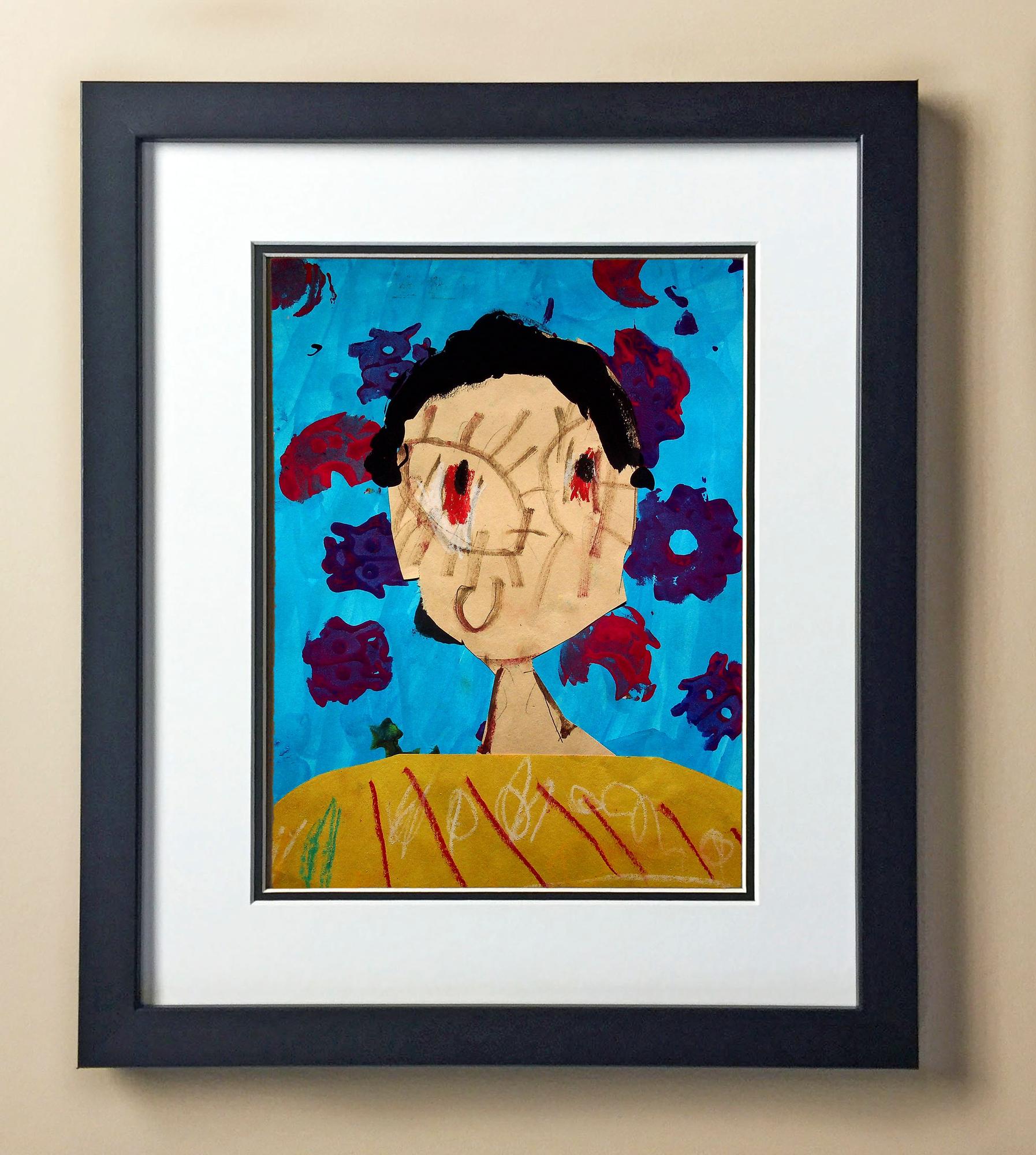 Included with the purchase is the Students Artwork, Frame, double matboard, shatter proof plexiglass, and a ready to hang backerboard with turnbuttons