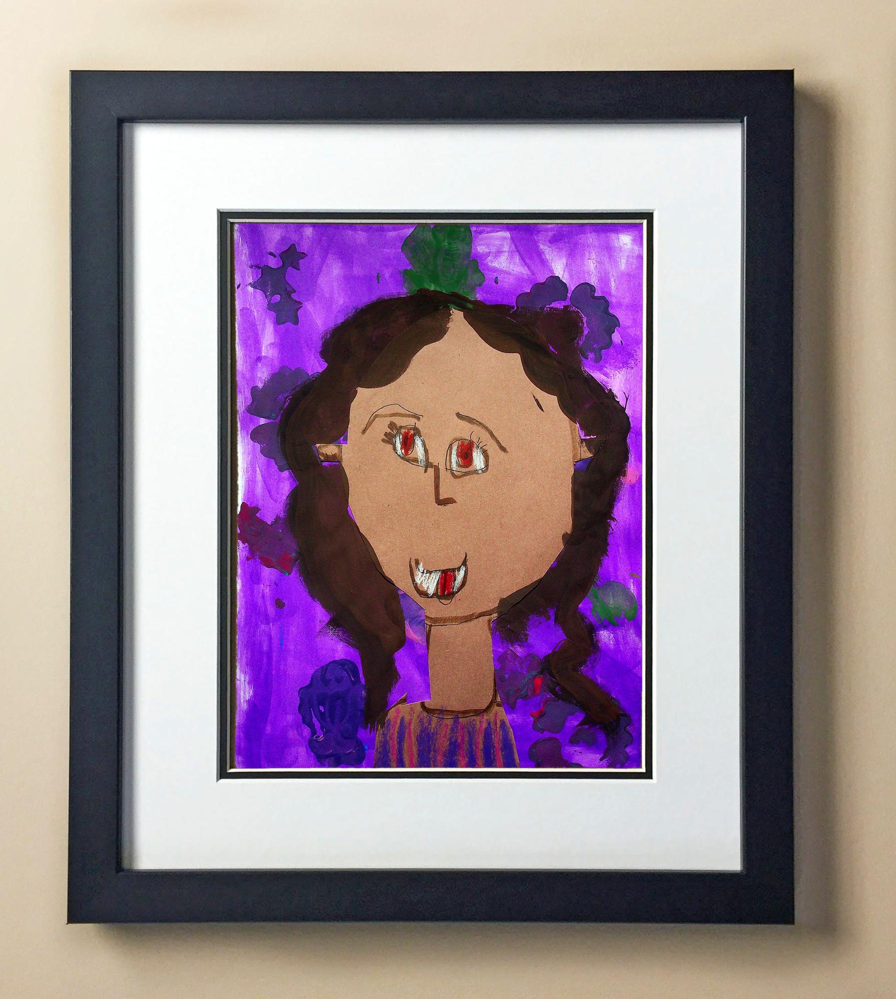 Included with the purchase is the Students Artwork, Frame, double matboard, shatter proof plexiglass, and a ready to hang backerboard with turnbuttons