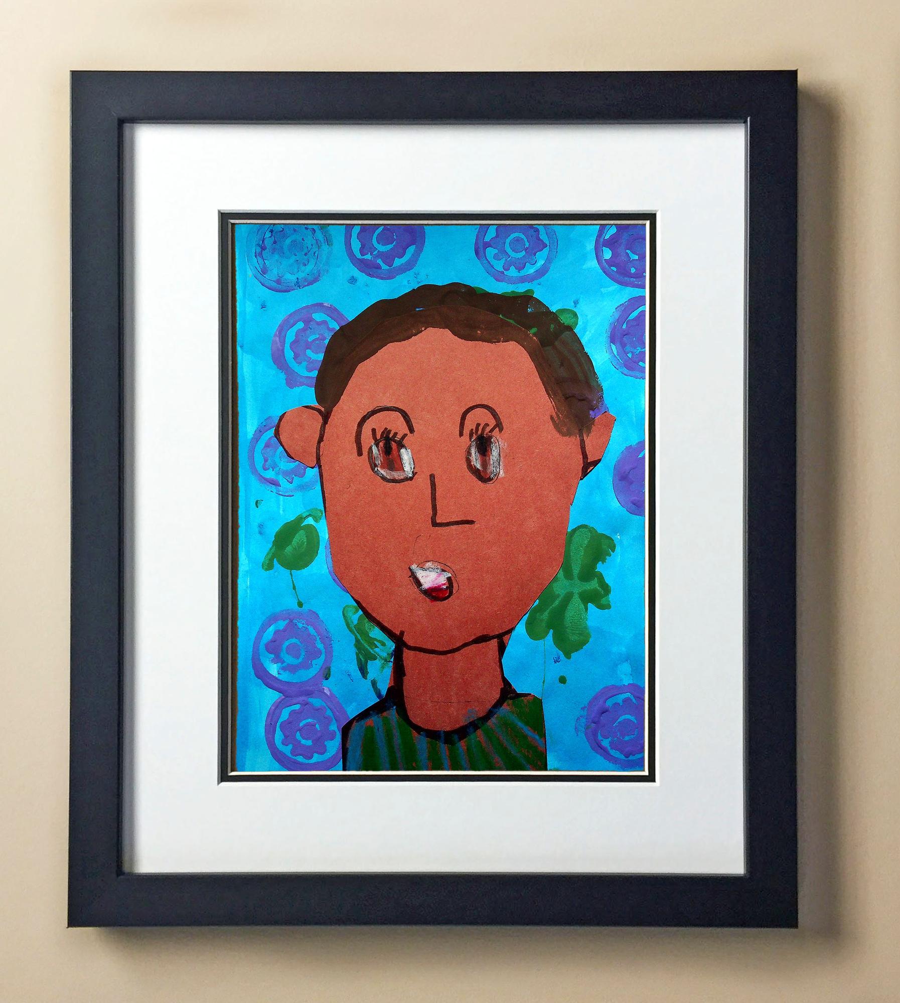 Included with the purchase is the Students Artwork, Frame, double matboard, shatter proof plexiglass, and a ready to hang backerboard with turnbuttons