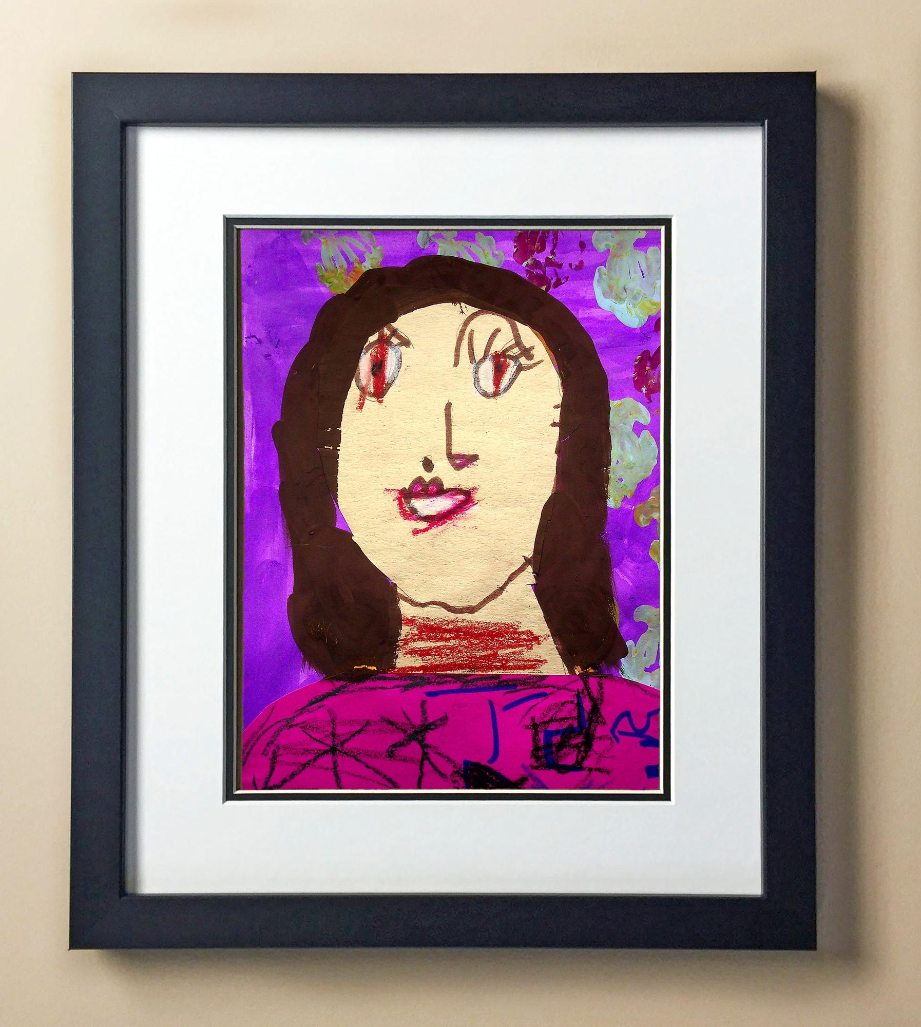 Included with the purchase is the Students Artwork, Frame, double matboard, shatter proof plexiglass, and a ready to hang backerboard with turnbuttons