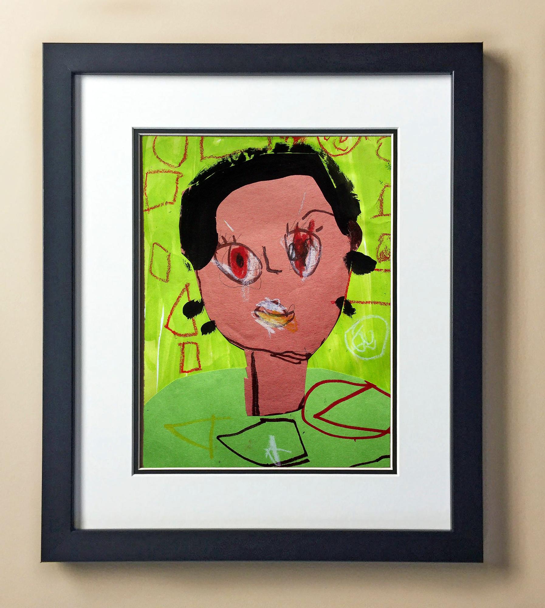 Included with the purchase is the Students Artwork, Frame, double matboard, shatter proof plexiglass, and a ready to hang backerboard with turnbuttons