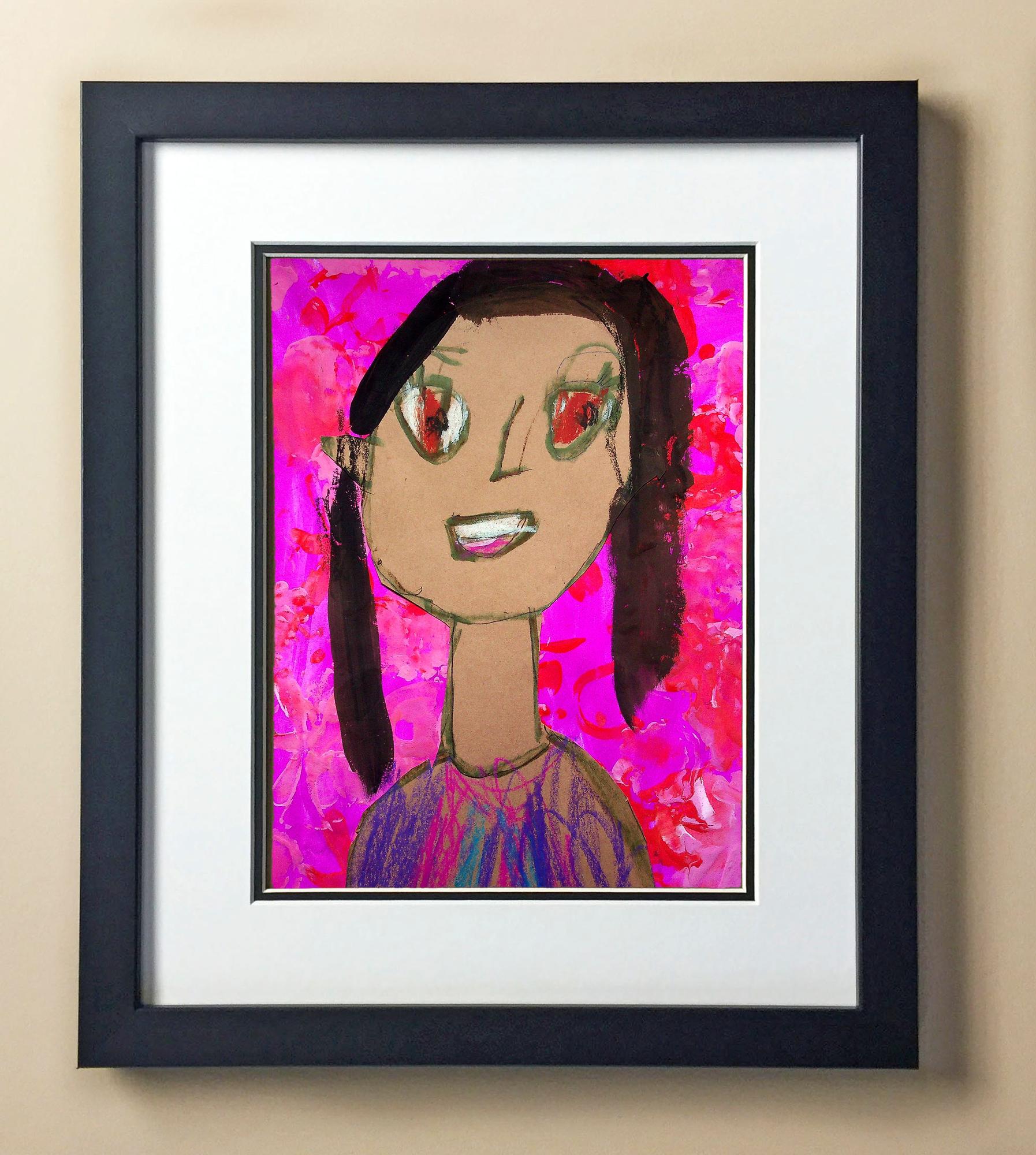 Included with the purchase is the Students Artwork, Frame, double matboard, shatter proof plexiglass, and a ready to hang backerboard with turnbuttons