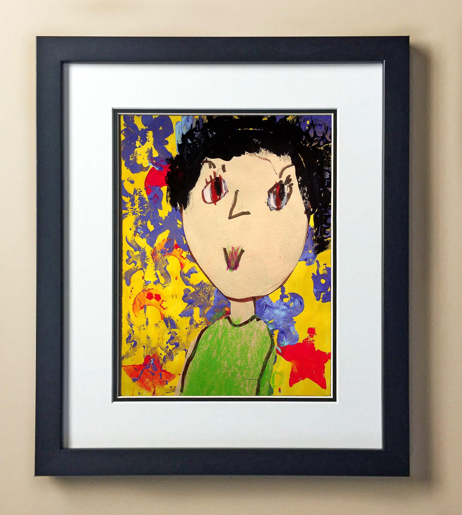 Included with the purchase is the Students Artwork, Frame, double matboard, shatter proof plexiglass, and a ready to hang backerboard with turnbuttons