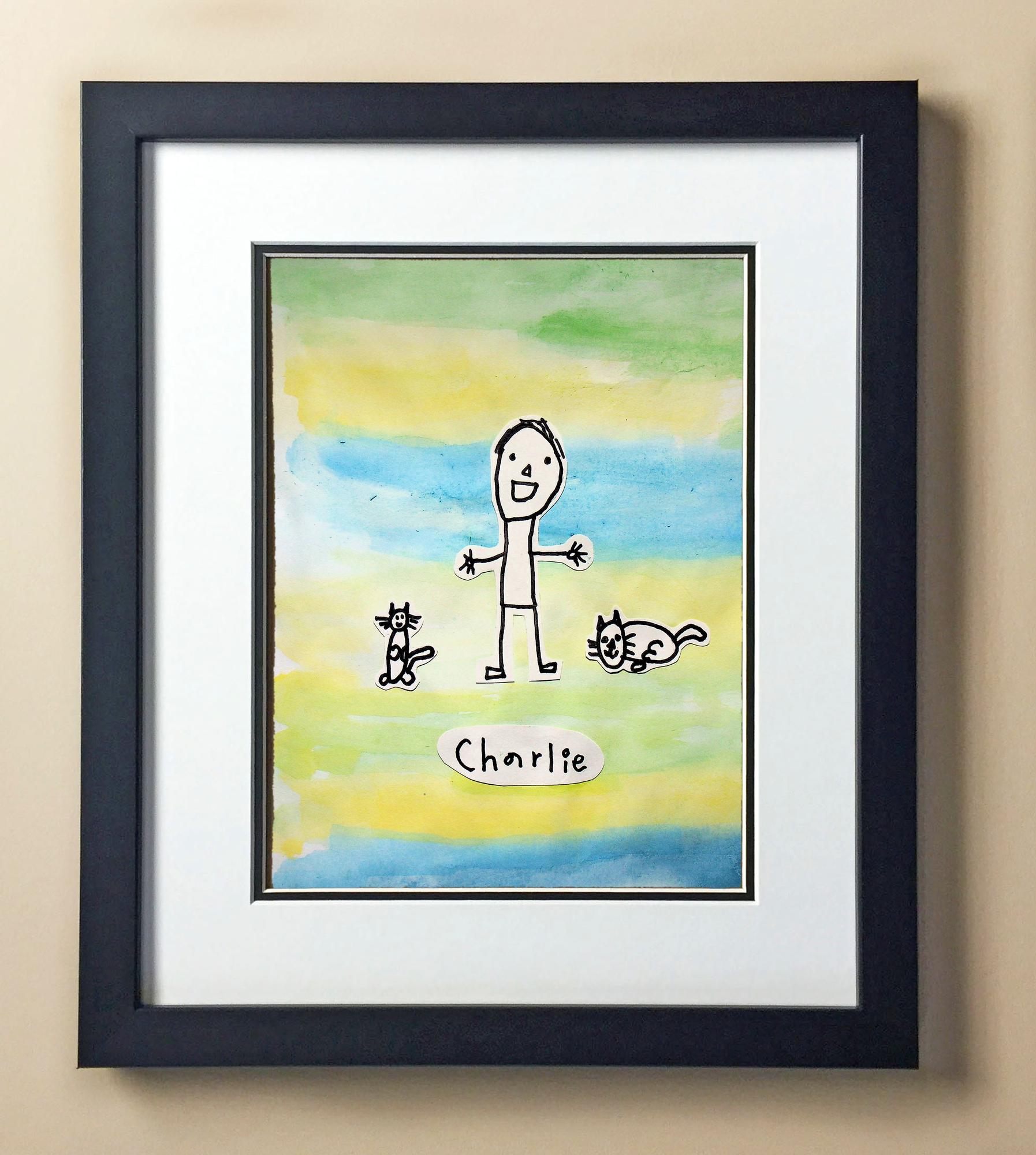 Included with the purchase is the Students Artwork, Frame, double matboard, shatter proof plexiglass, and a ready to hang backerboard with turnbuttons