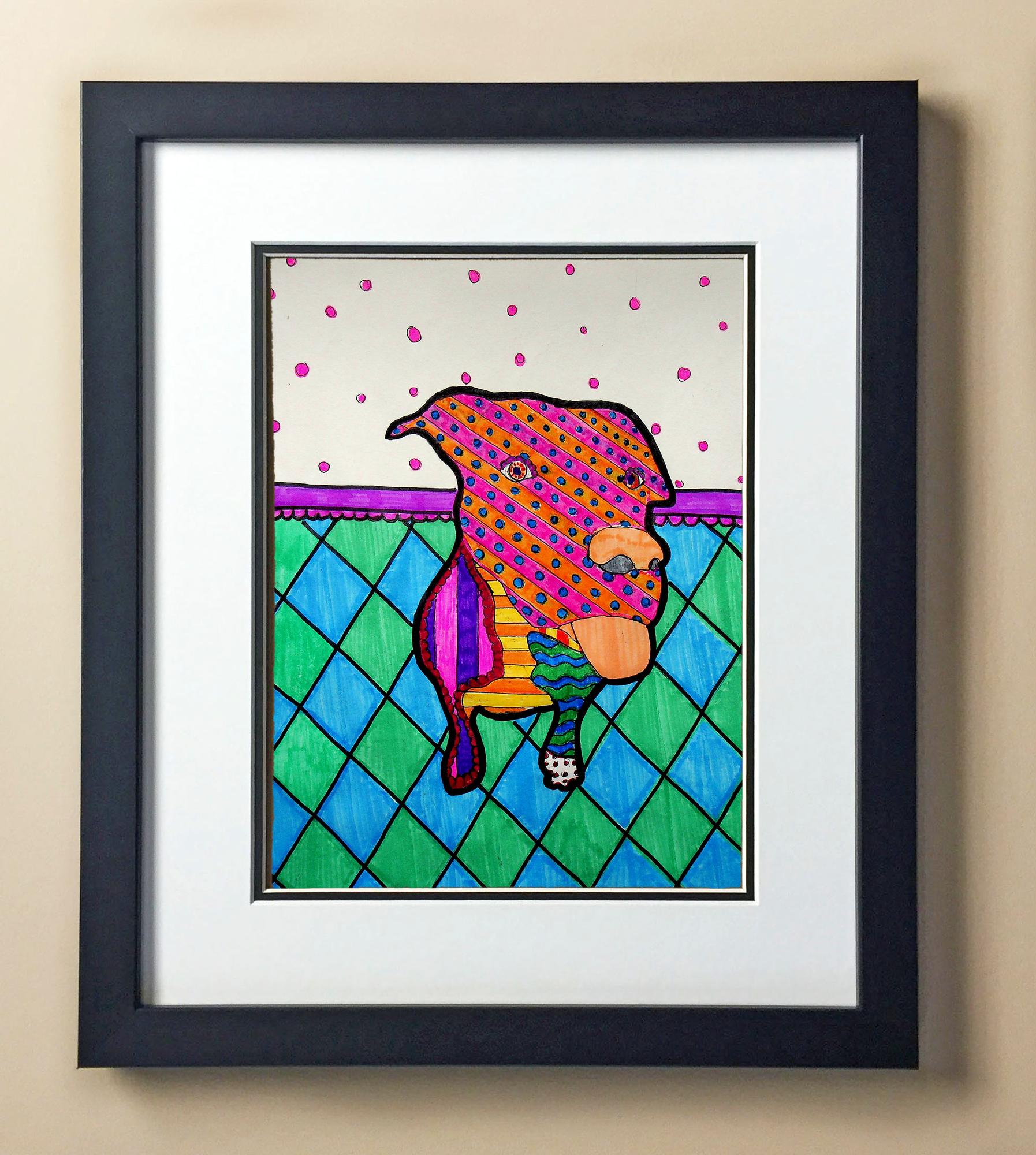 Included with the purchase is the Students Artwork, Frame, double matboard, shatter proof plexiglass, and a ready to hang backerboard with turnbuttons