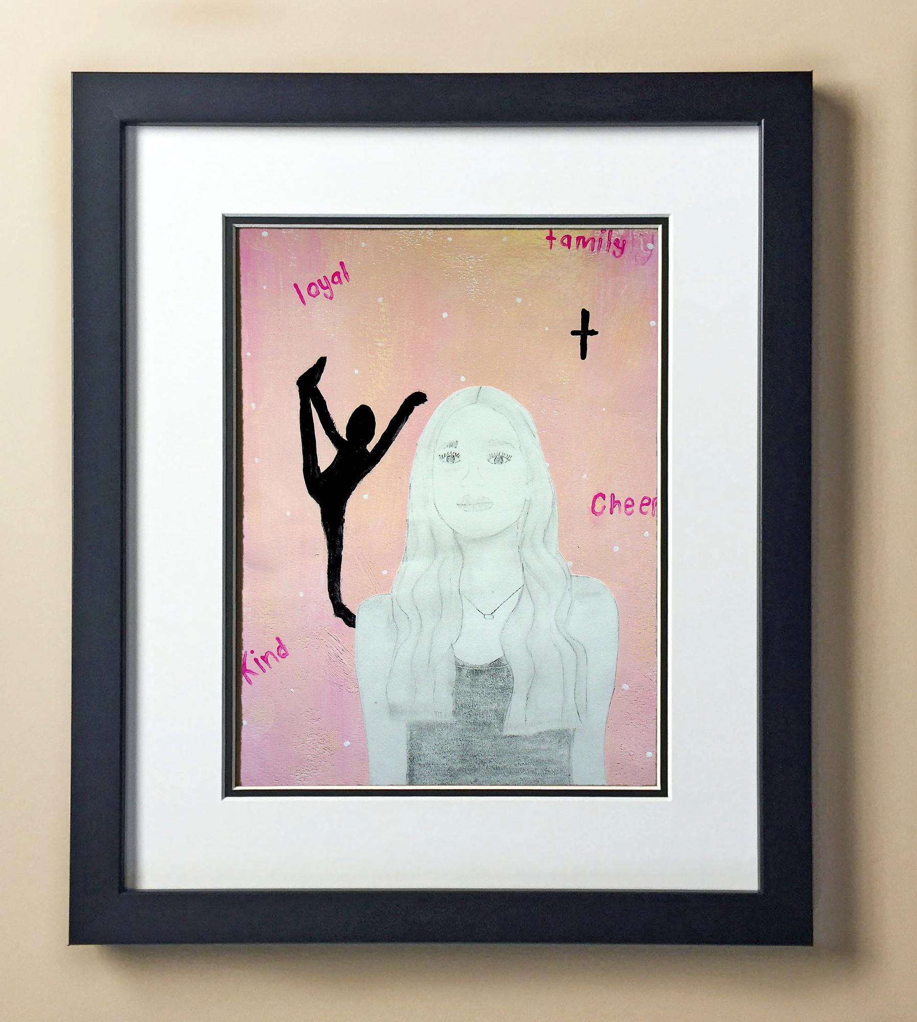 Included with the purchase is the Students Artwork, Frame, double matboard, shatter proof plexiglass, and a ready to hang backerboard with turnbuttons