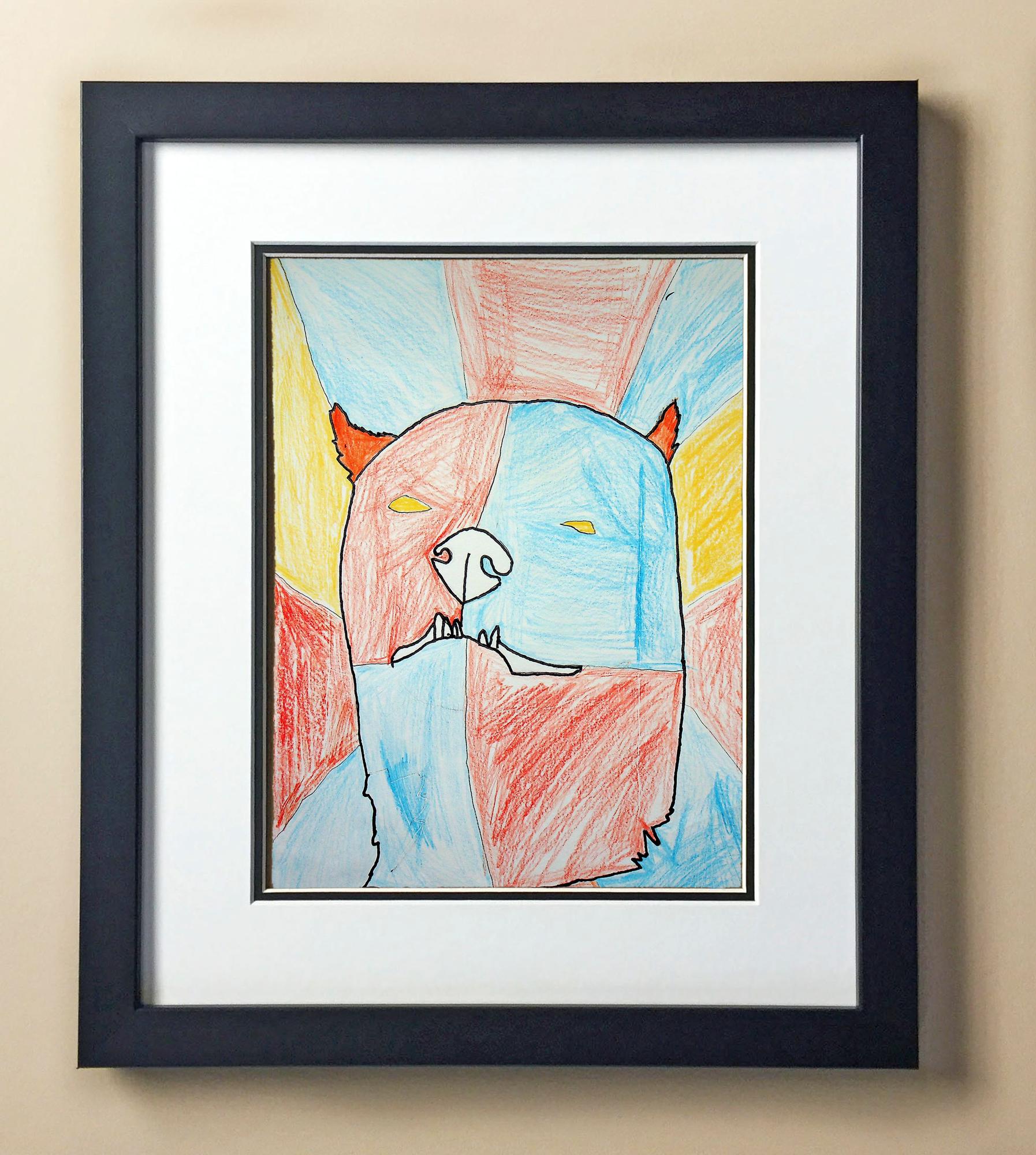 Included with the purchase is the Students Artwork, Frame, double matboard, shatter proof plexiglass, and a ready to hang backerboard with turnbuttons