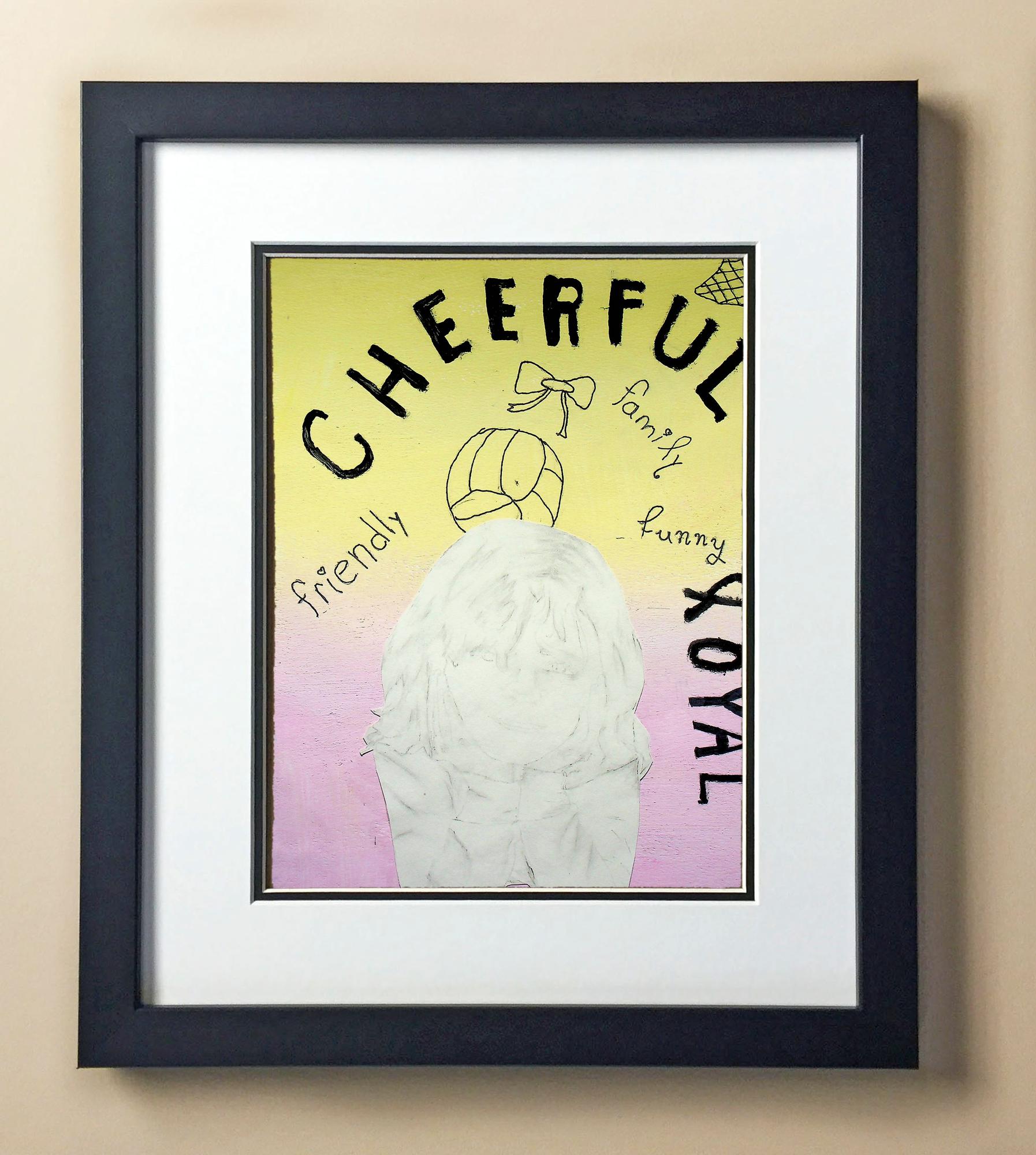 Included with the purchase is the Students Artwork, Frame, double matboard, shatter proof plexiglass, and a ready to hang backerboard with turnbuttons