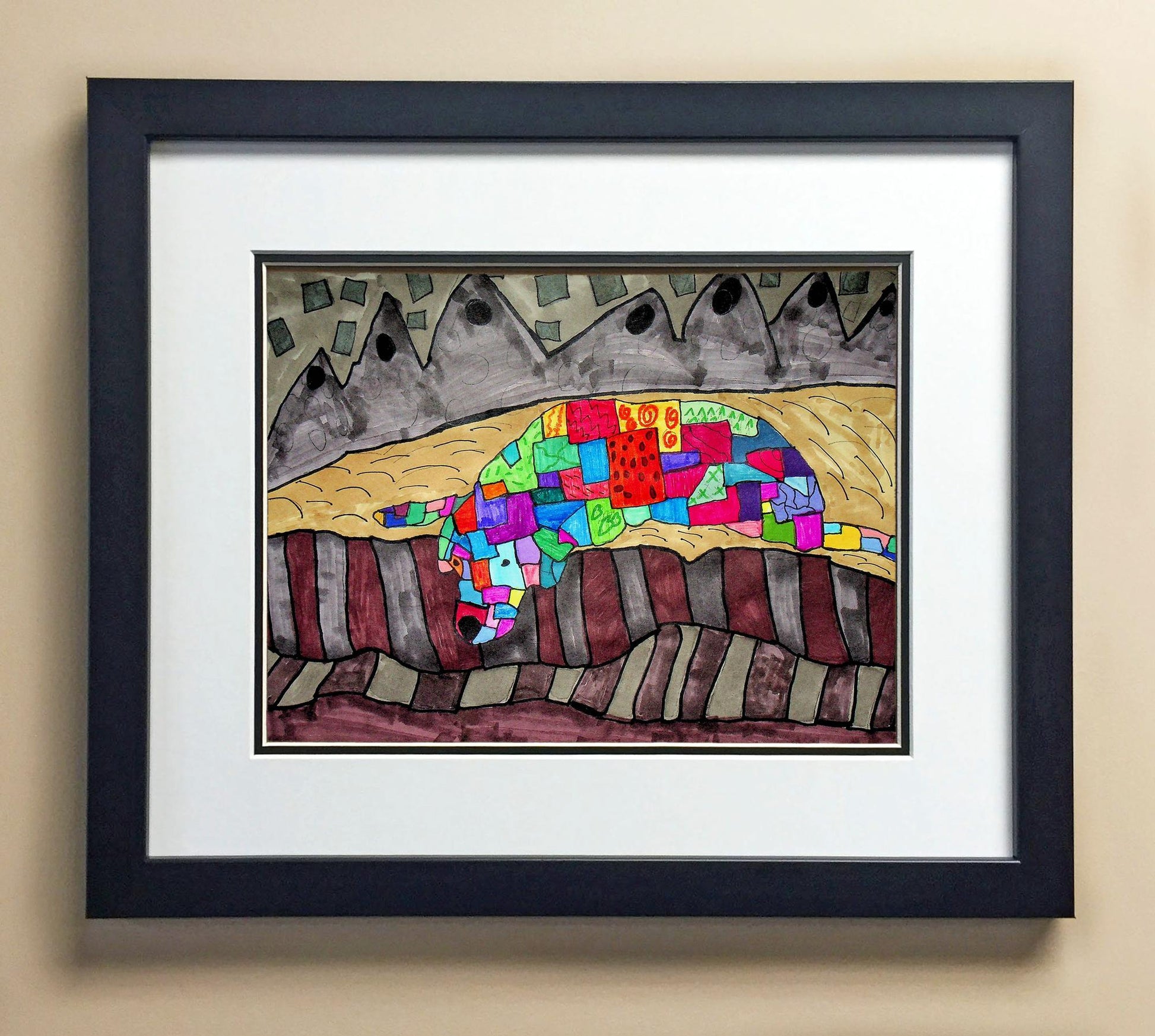 Included with the purchase is the Students Artwork, Frame, double matboard, shatter proof plexiglass, and a ready to hang backerboard with turnbuttons
