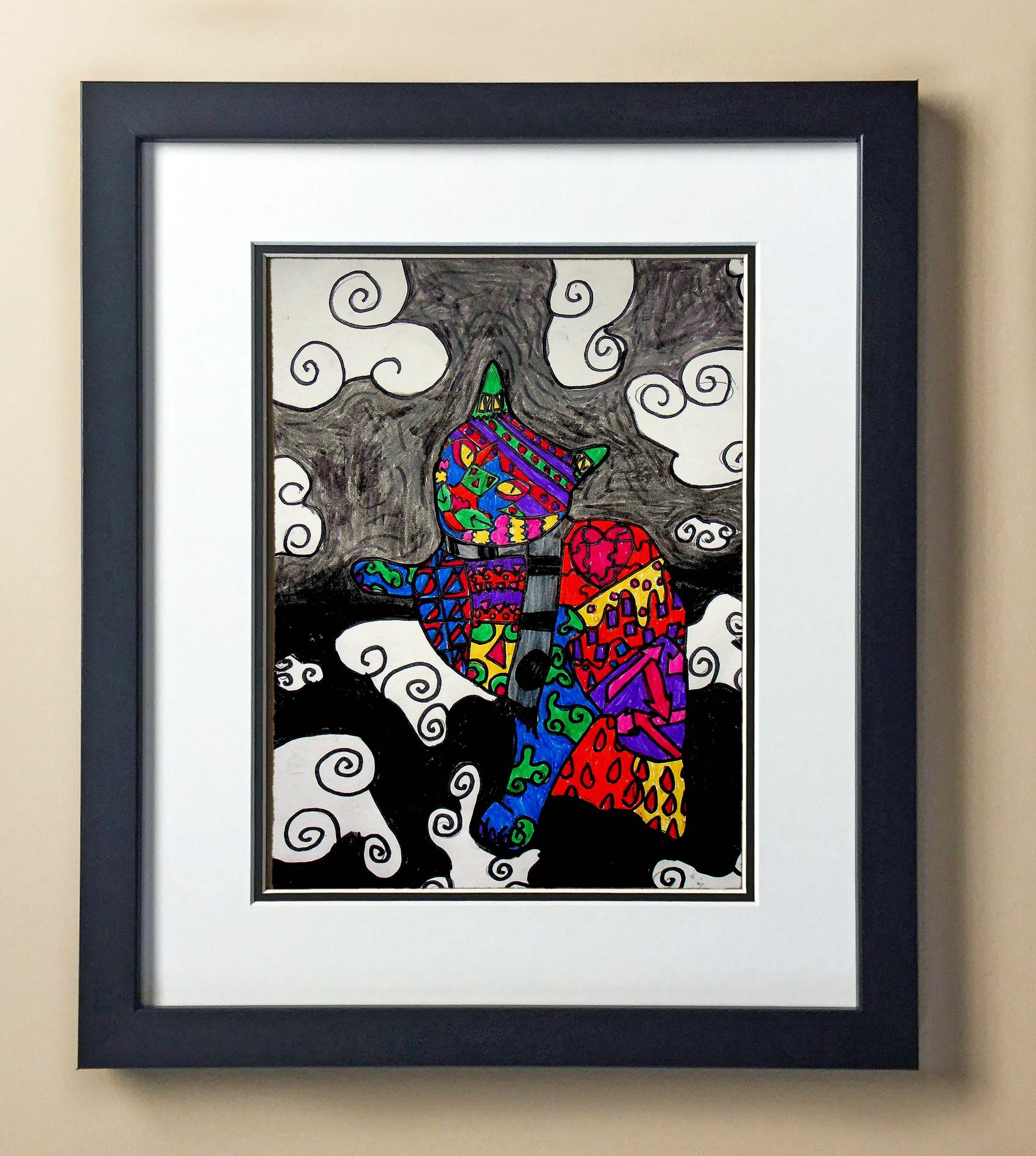 Included with the purchase is the Students Artwork, Frame, double matboard, shatter proof plexiglass, and a ready to hang backerboard with turnbuttons