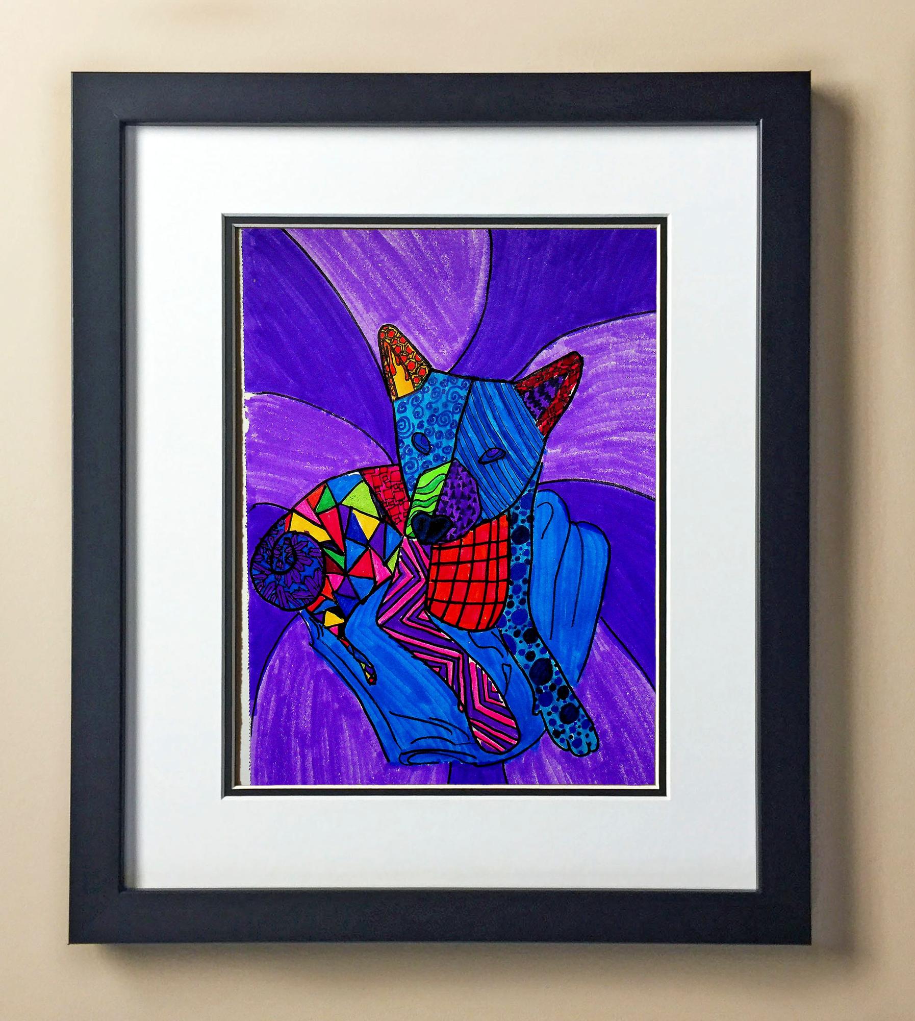 Included with the purchase is the Students Artwork, Frame, double matboard, shatter proof plexiglass, and a ready to hang backerboard with turnbuttons