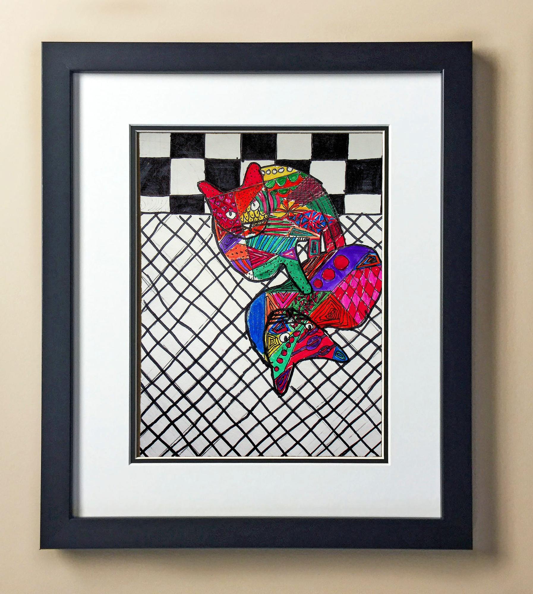 Included with the purchase is the Students Artwork, Frame, double matboard, shatter proof plexiglass, and a ready to hang backerboard with turnbuttons