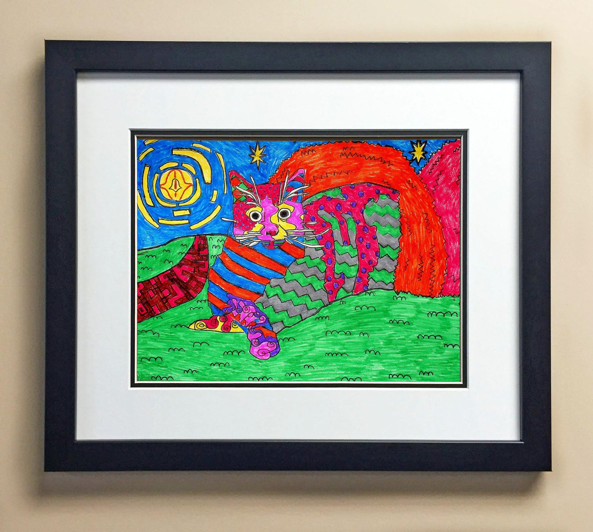 Included with the purchase is the Students Artwork, Frame, double matboard, shatter proof plexiglass, and a ready to hang backerboard with turnbuttons