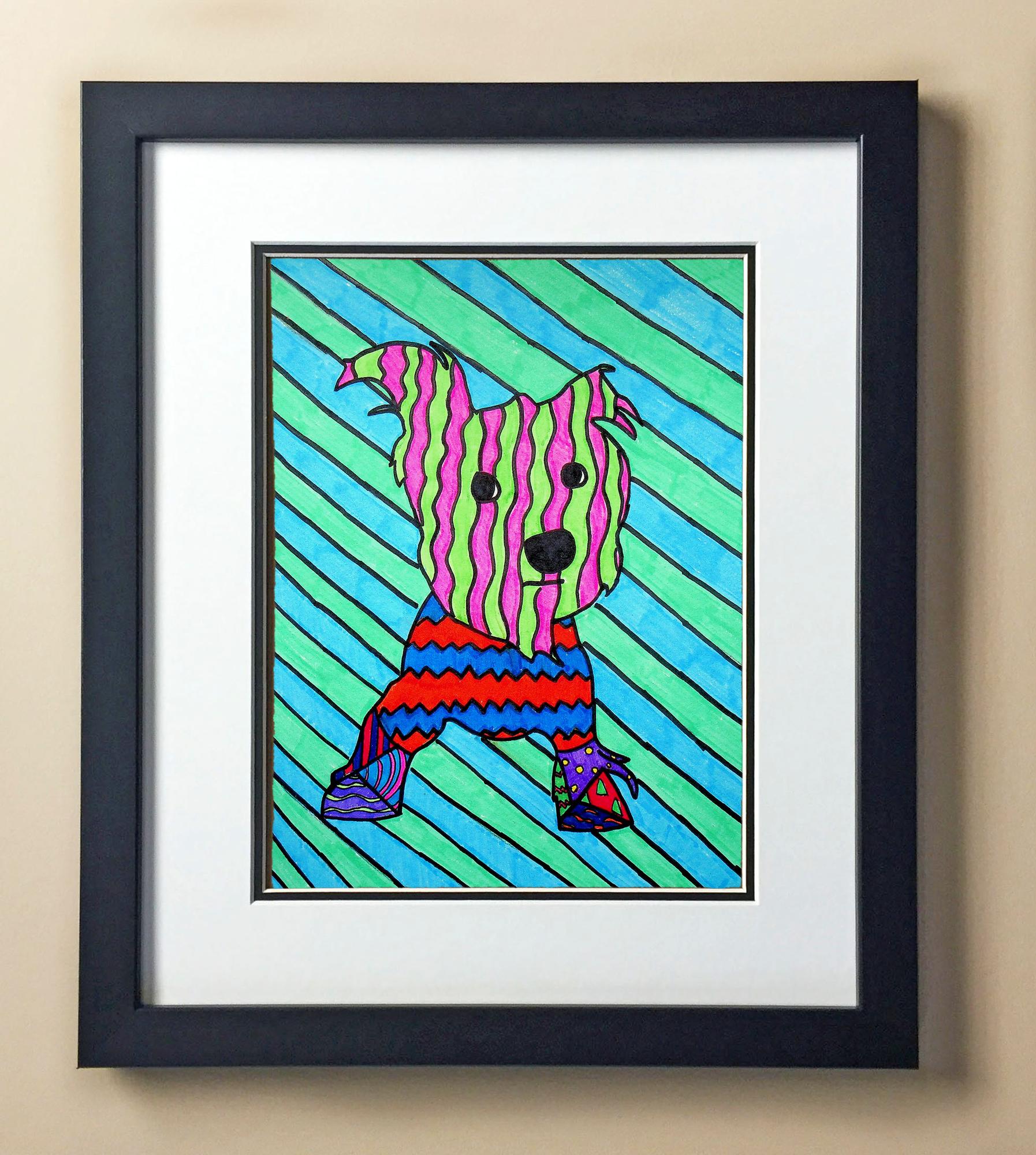 Included with the purchase is the Students Artwork, Frame, double matboard, shatter proof plexiglass, and a ready to hang backerboard with turnbuttons