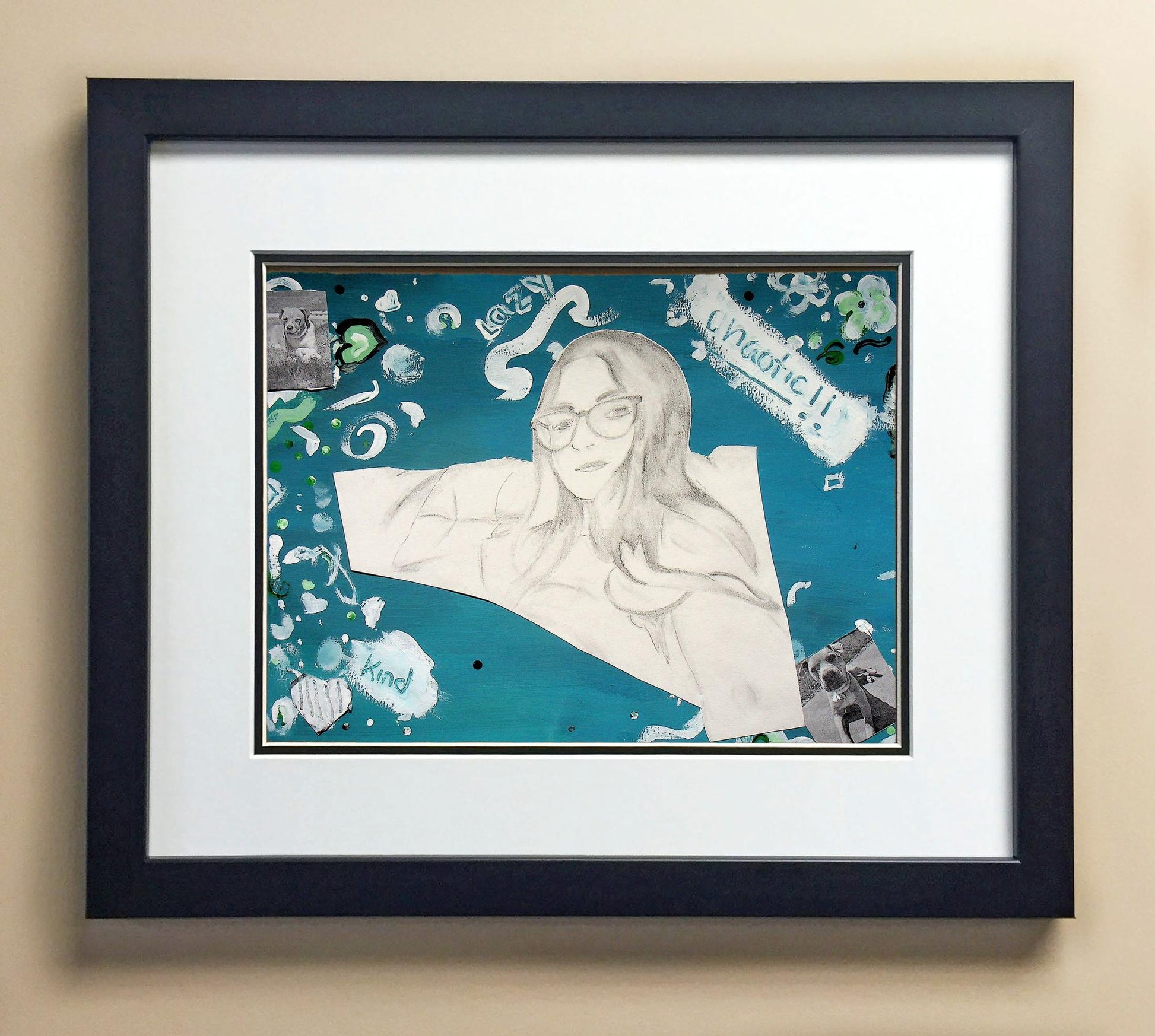 Included with the purchase is the Students Artwork, Frame, double matboard, shatter proof plexiglass, and a ready to hang backerboard with turnbuttons