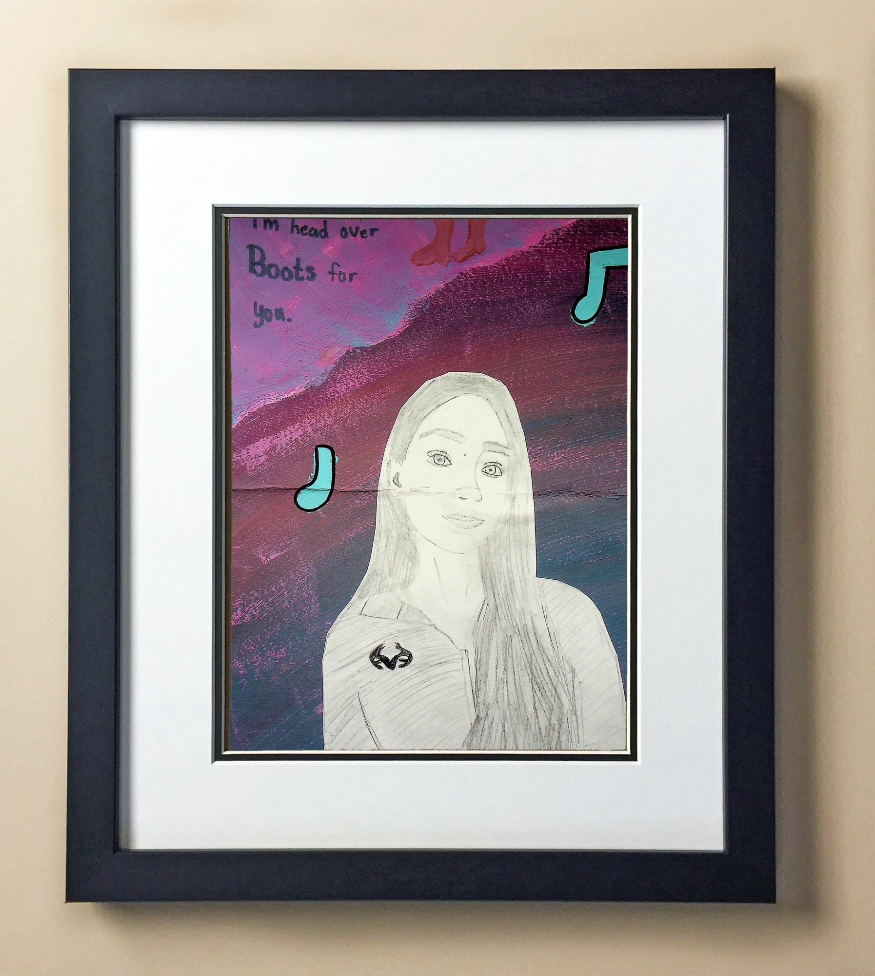 Included with the purchase is the Students Artwork, Frame, double matboard, shatter proof plexiglass, and a ready to hang backerboard with turnbuttons