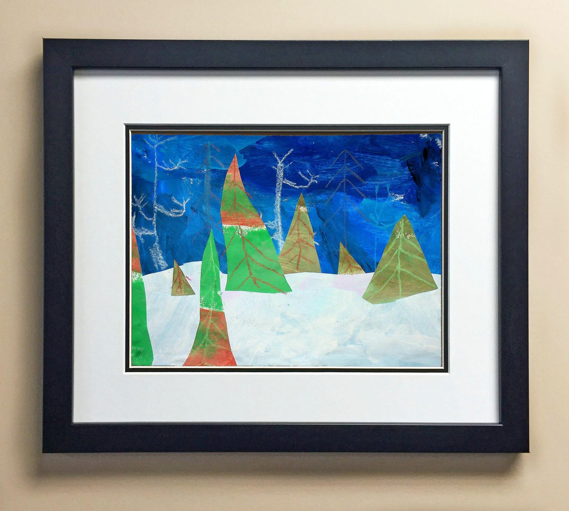 Included with the purchase is the Students Artwork, Frame, double matboard, shatter proof plexiglass, and a ready to hang backerboard with turnbuttons