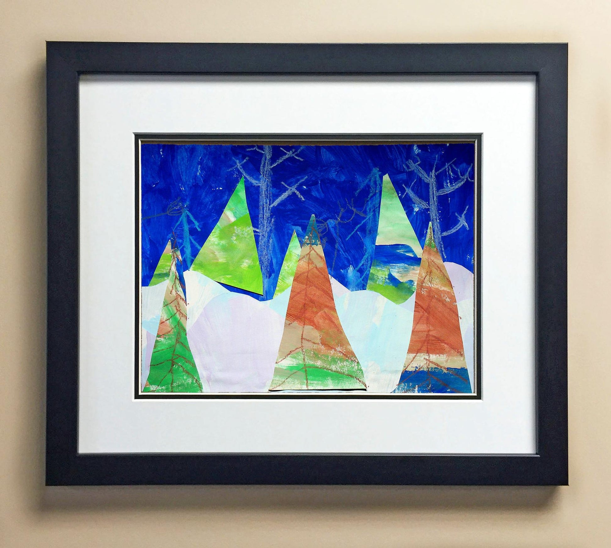 Included with the purchase is the Students Artwork, Frame, double matboard, shatter proof plexiglass, and a ready to hang backerboard with turnbuttons