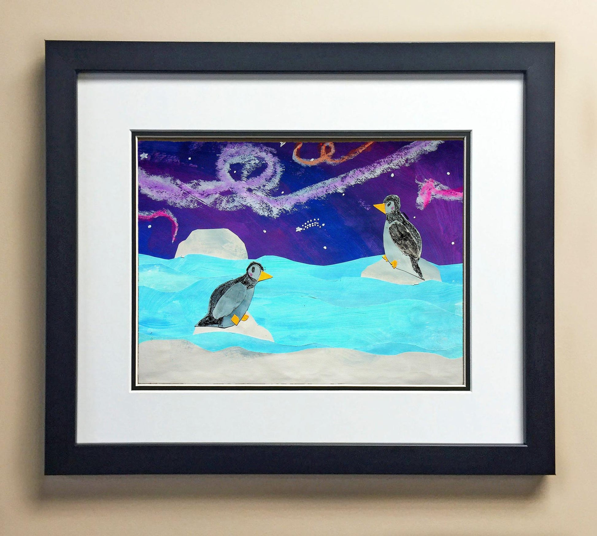 Included with the purchase is the Students Artwork, Frame, double matboard, shatter proof plexiglass, and a ready to hang backerboard with turnbuttons