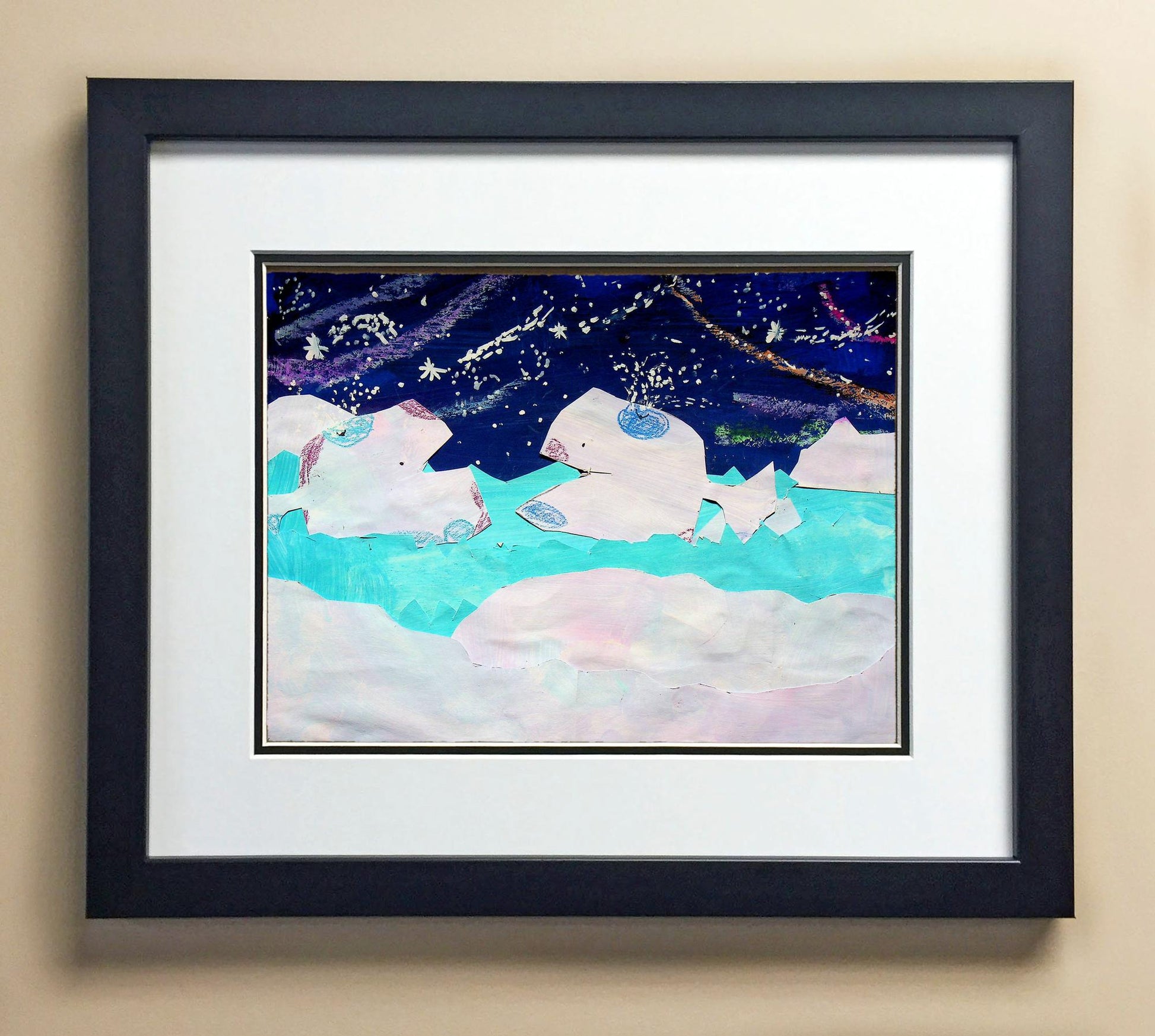 Included with the purchase is the Students Artwork, Frame, double matboard, shatter proof plexiglass, and a ready to hang backerboard with turnbuttons