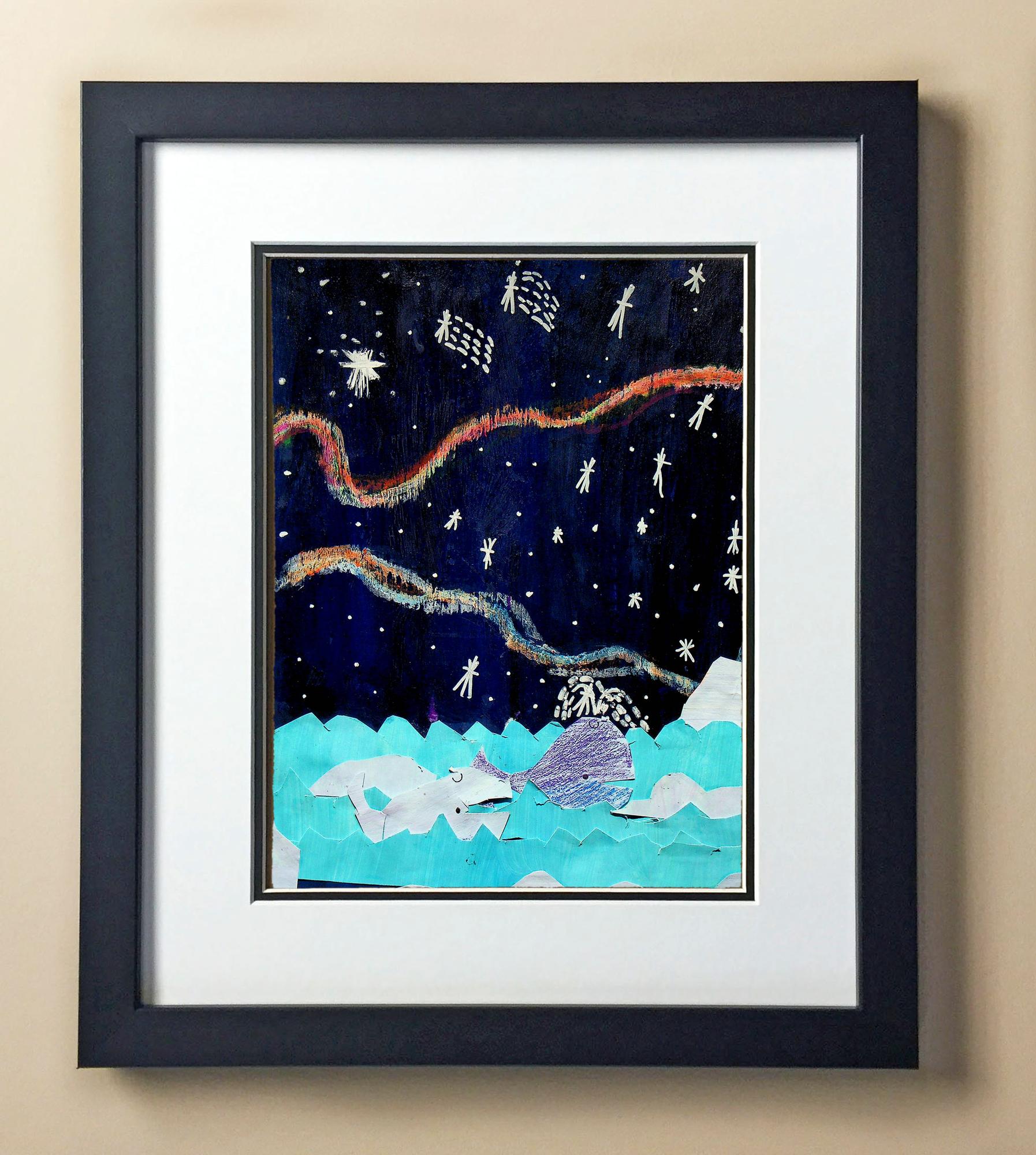 Included with the purchase is the Students Artwork, Frame, double matboard, shatter proof plexiglass, and a ready to hang backerboard with turnbuttons