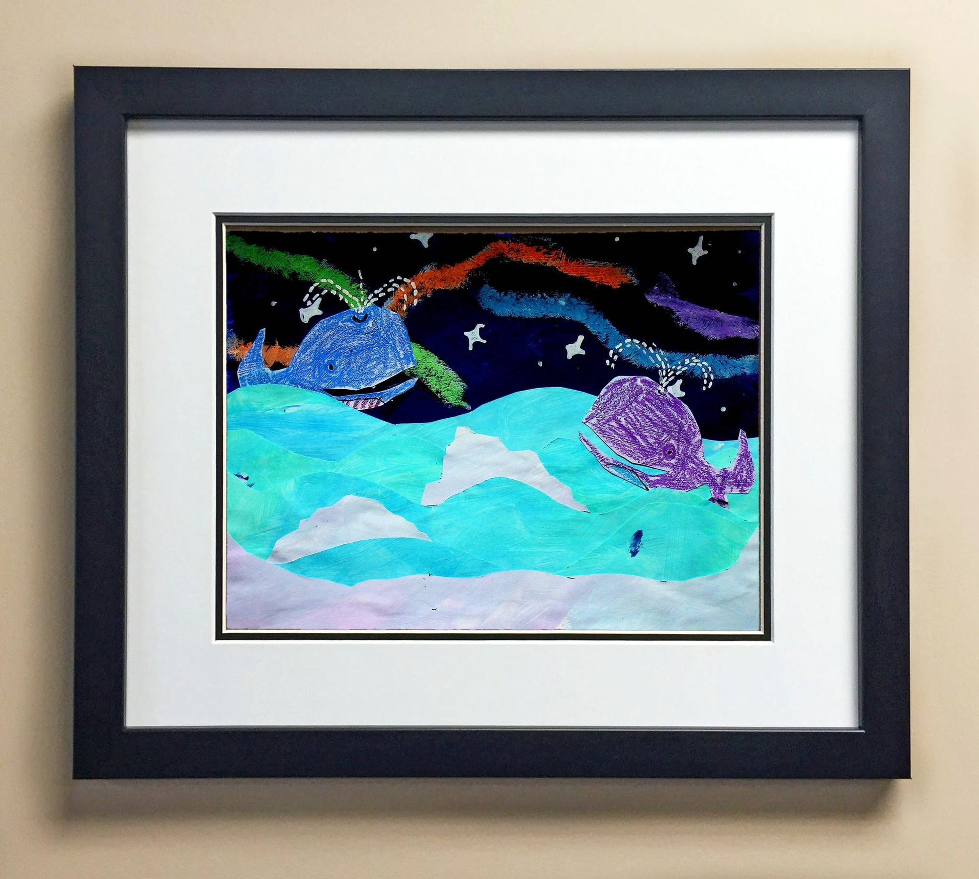 Included with the purchase is the Students Artwork, Frame, double matboard, shatter proof plexiglass, and a ready to hang backerboard with turnbuttons