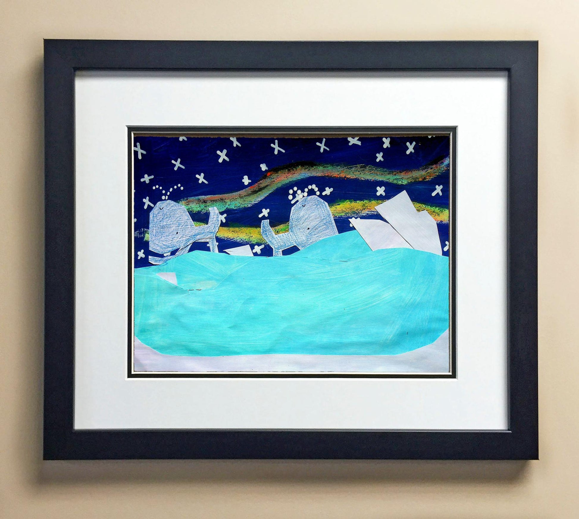 Included with the purchase is the Students Artwork, Frame, double matboard, shatter proof plexiglass, and a ready to hang backerboard with turnbuttons