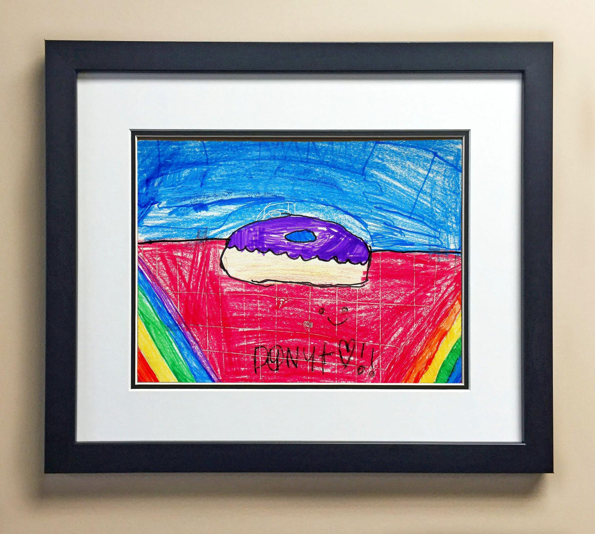 Included with the purchase is the Students Artwork, Frame, double matboard, shatter proof plexiglass, and a ready to hang backerboard with turnbuttons