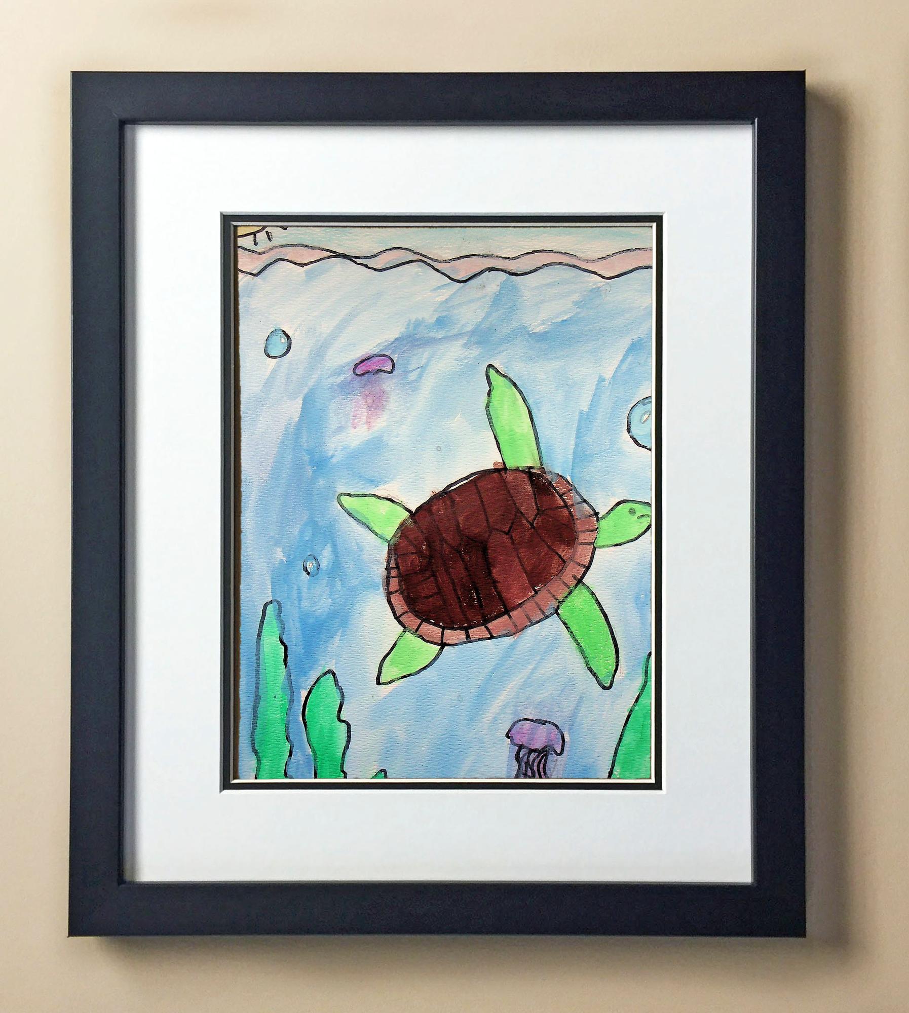 Included with the purchase is the Students Artwork, Frame, double matboard, shatter proof plexiglass, and a ready to hang backerboard with turnbuttons