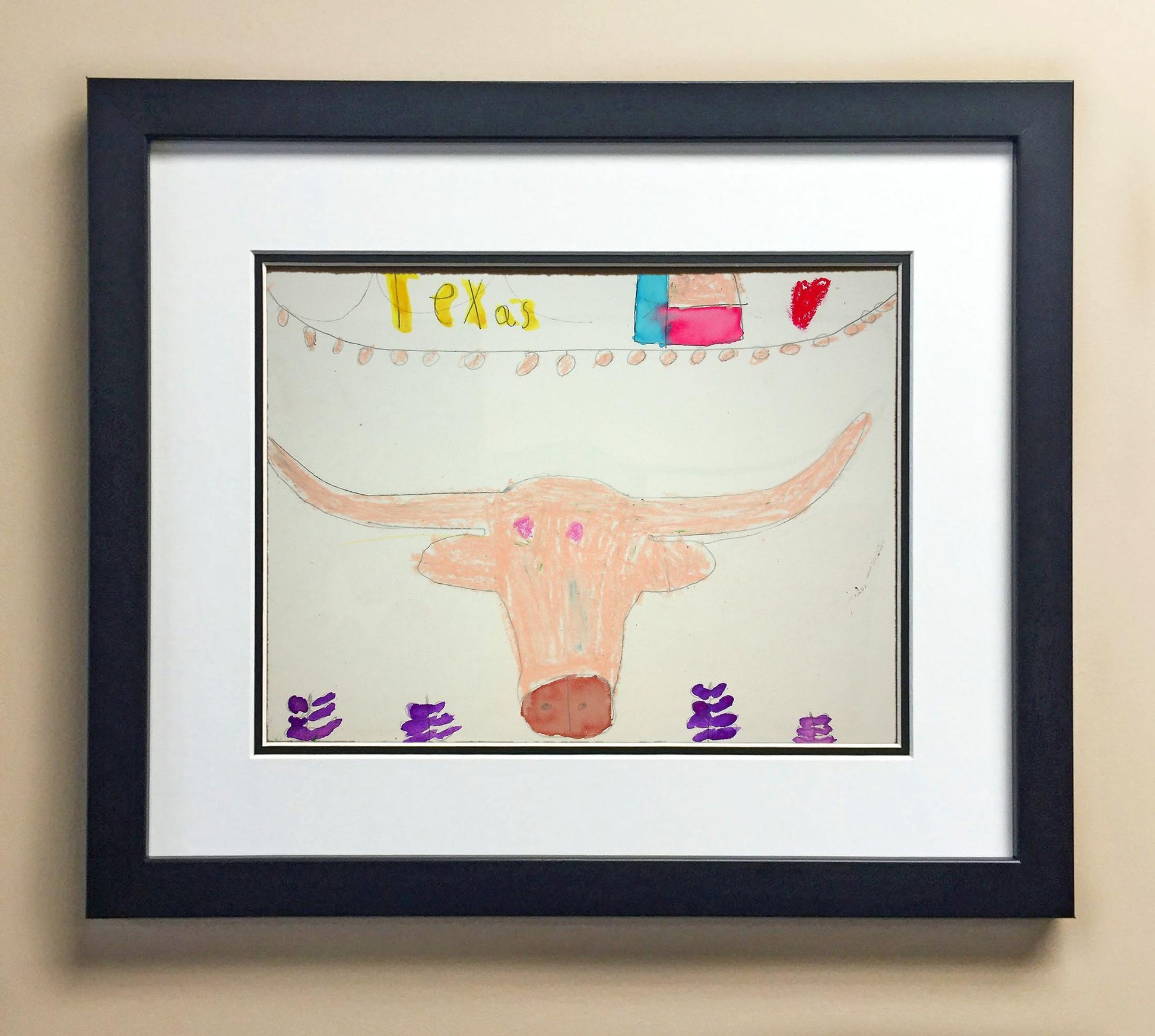 Included with the purchase is the Students Artwork, Frame, double matboard, shatter proof plexiglass, and a ready to hang backerboard with turnbuttons