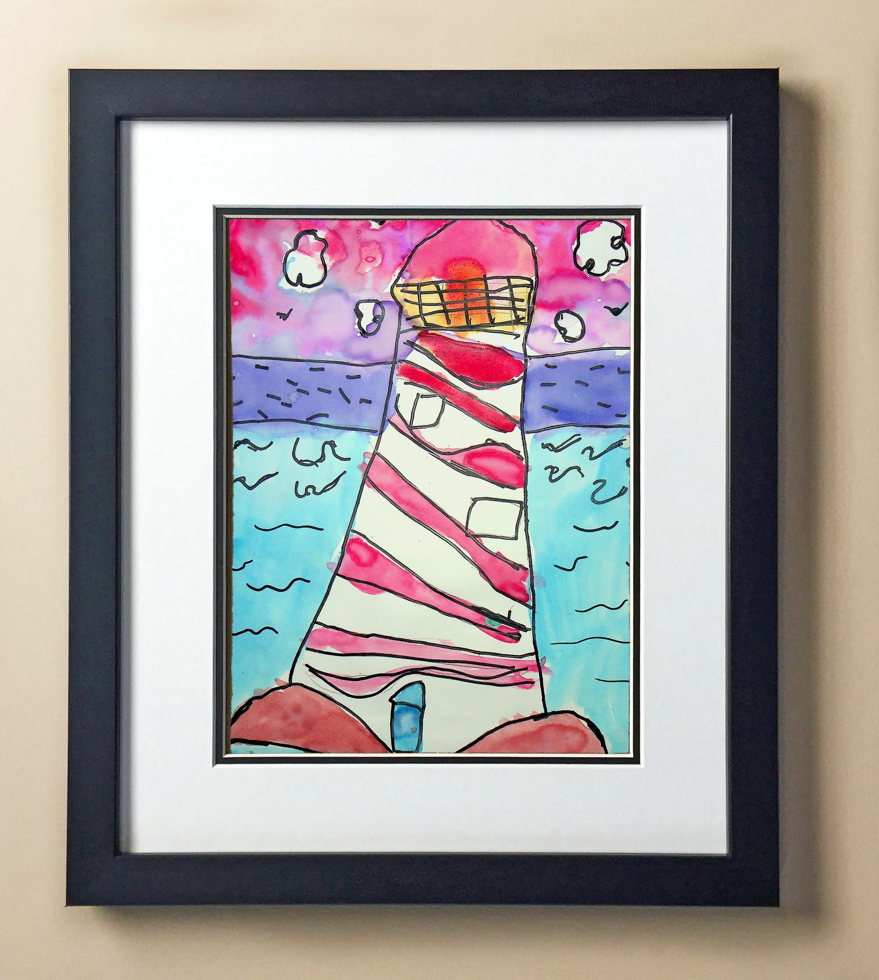 Included with the purchase is the Students Artwork, Frame, double matboard, shatter proof plexiglass, and a ready to hang backerboard with turnbuttons