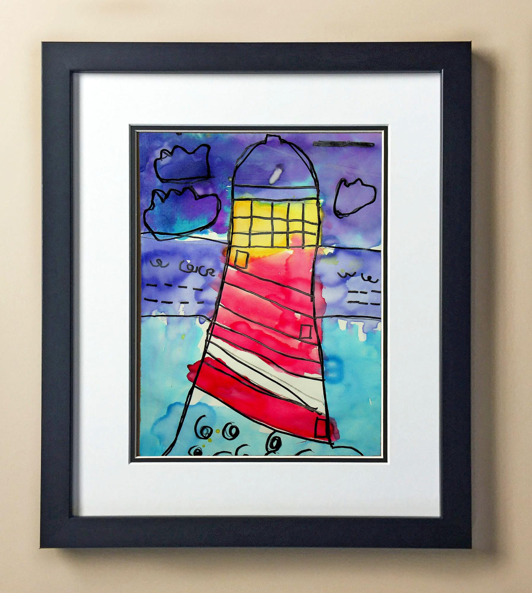 Included with the purchase is the Students Artwork, Frame, double matboard, shatter proof plexiglass, and a ready to hang backerboard with turnbuttons