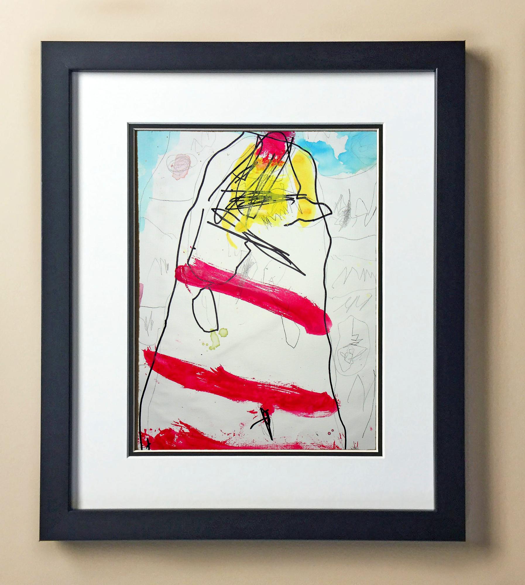 Included with the purchase is the Students Artwork, Frame, double matboard, shatter proof plexiglass, and a ready to hang backerboard with turnbuttons